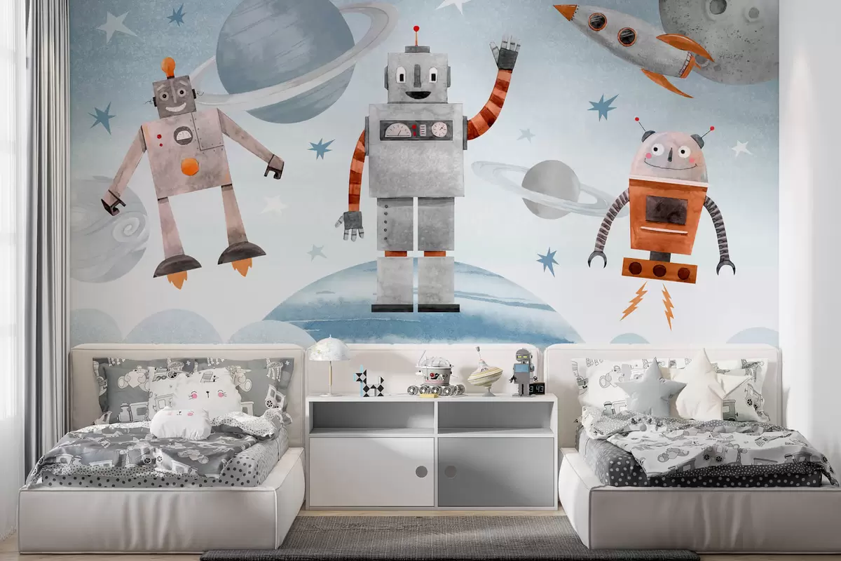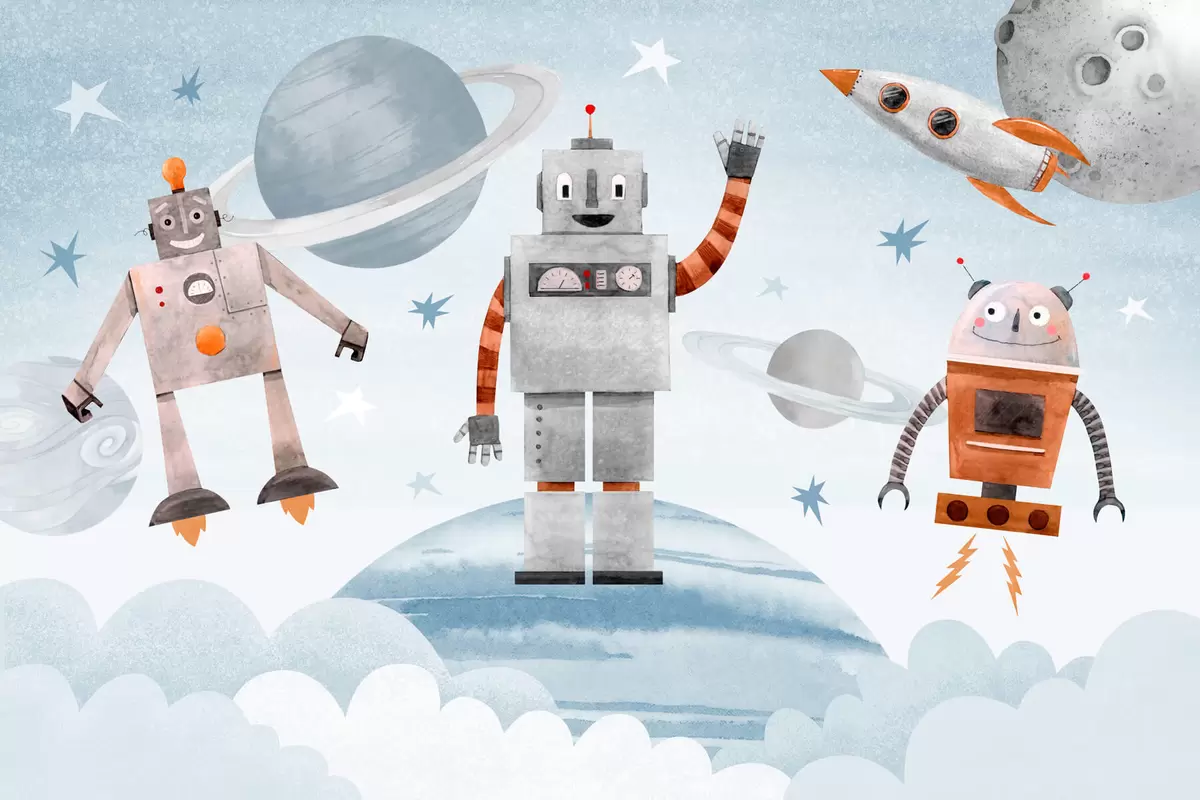 Zidne murale Roboti u svemiru u stilu akvarela br. w04016