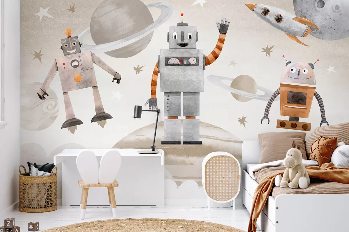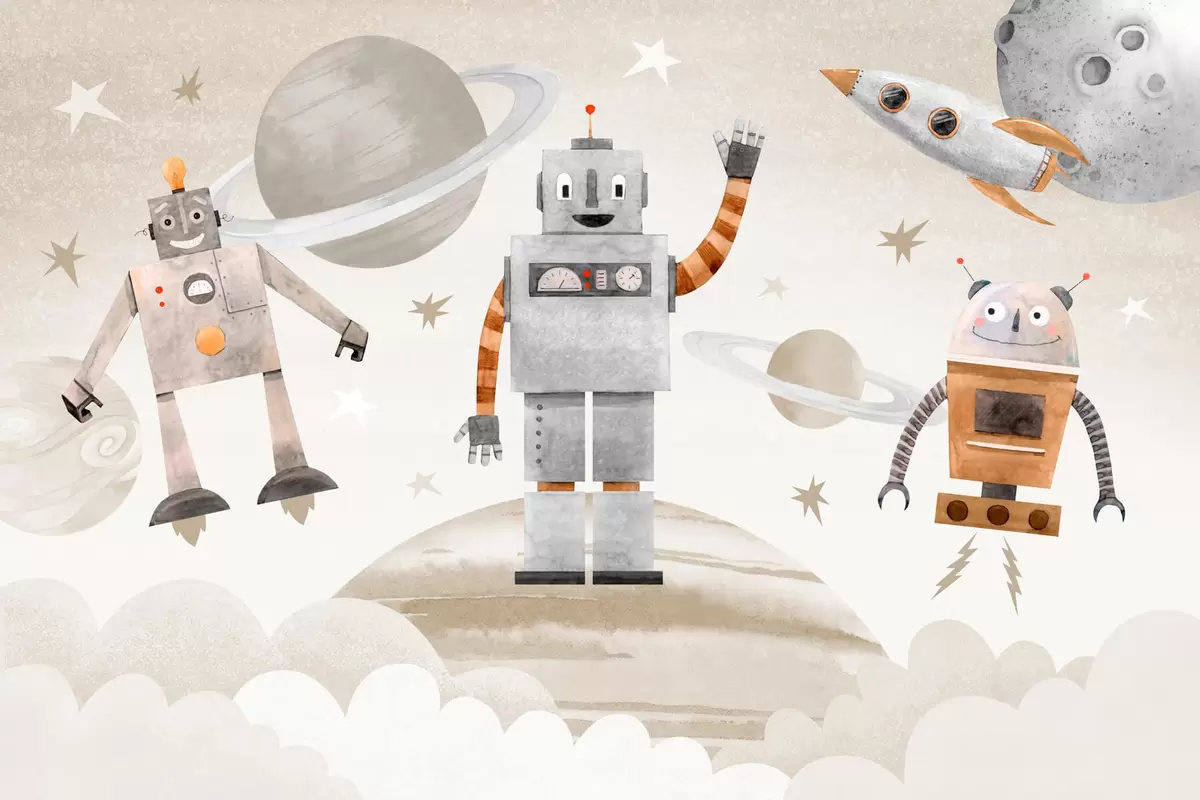 Zidne murale Roboti u svemiru u stilu akvarela br. w04016v1