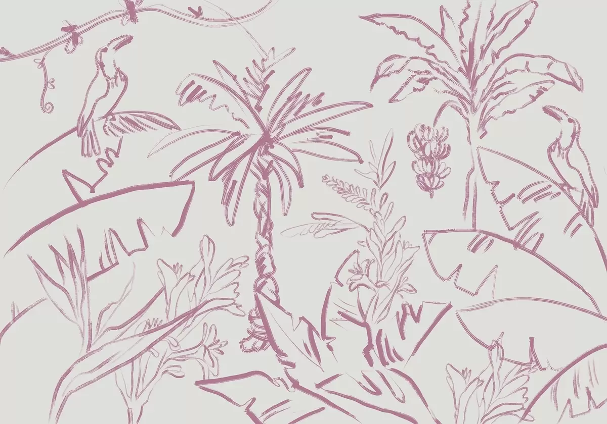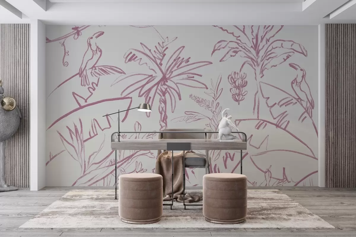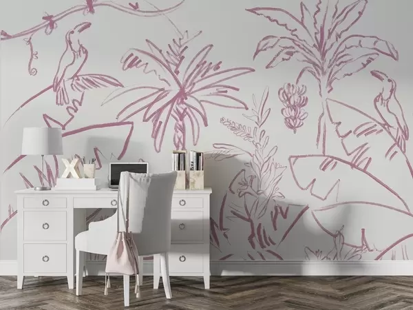 Zidne murale Tropske linije u ružičastoj boji, tropske biljke, banane br. w04020v2