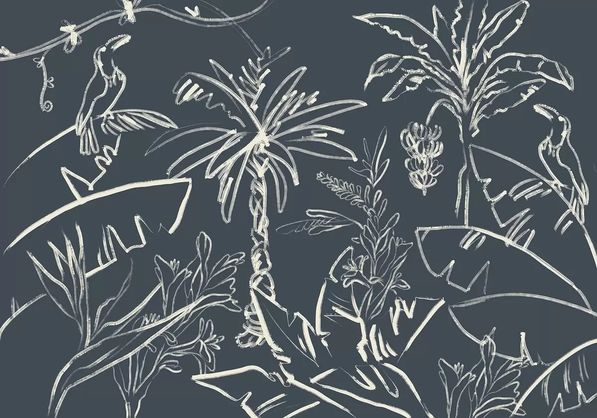 Zidne murale Tropski uzorak na tamnoplavoj pozadini, palme, banane br. w04020v4