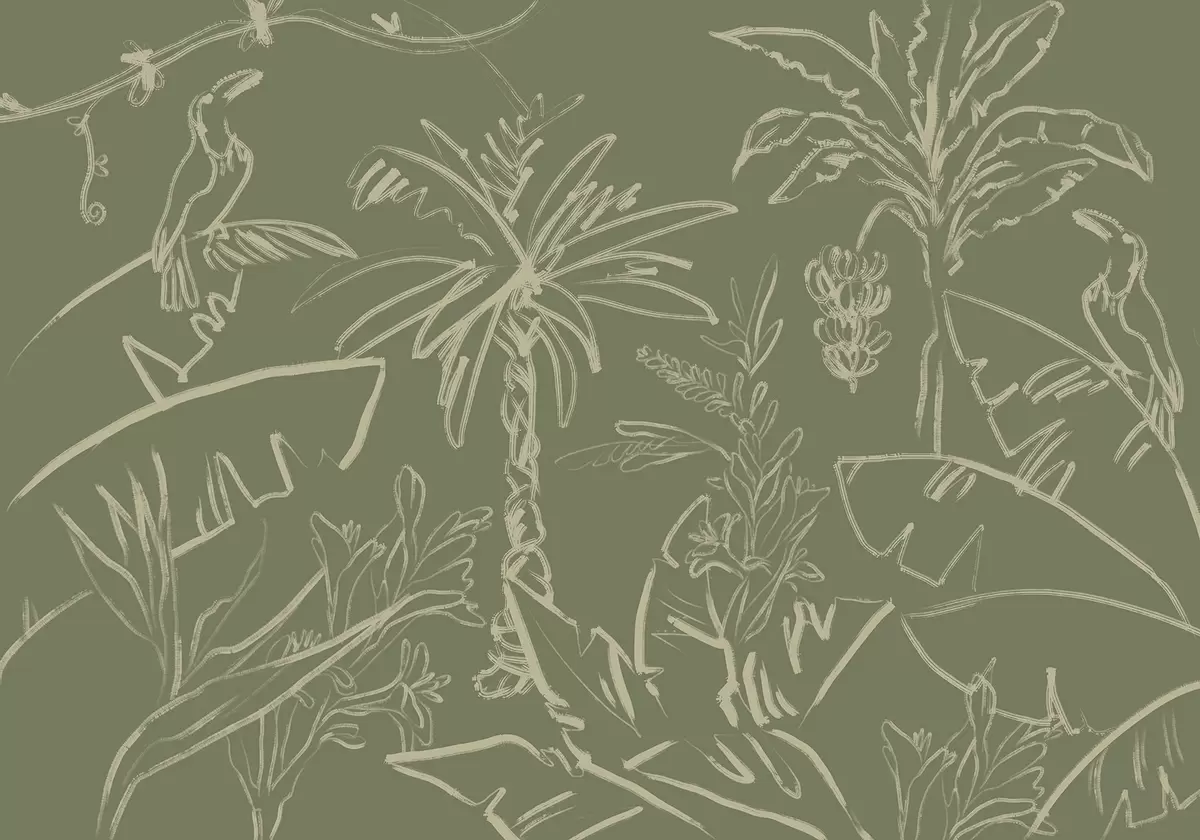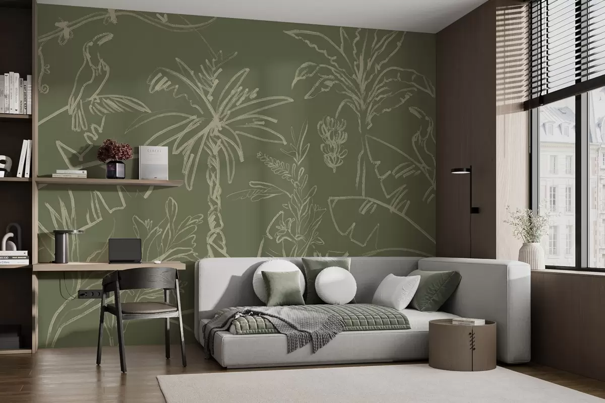 Zidne murale Tropski uzorak na zelenoj pozadini, palme, banane br. w04020v6