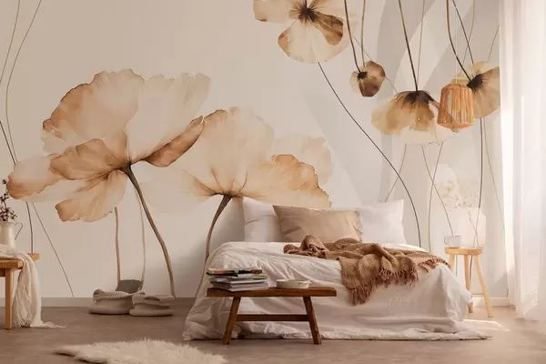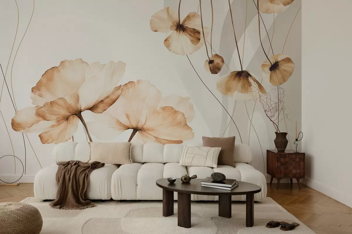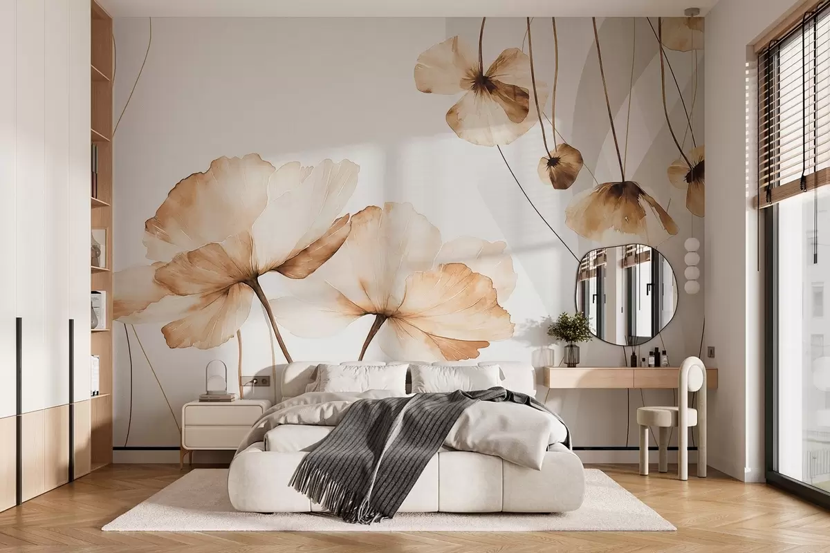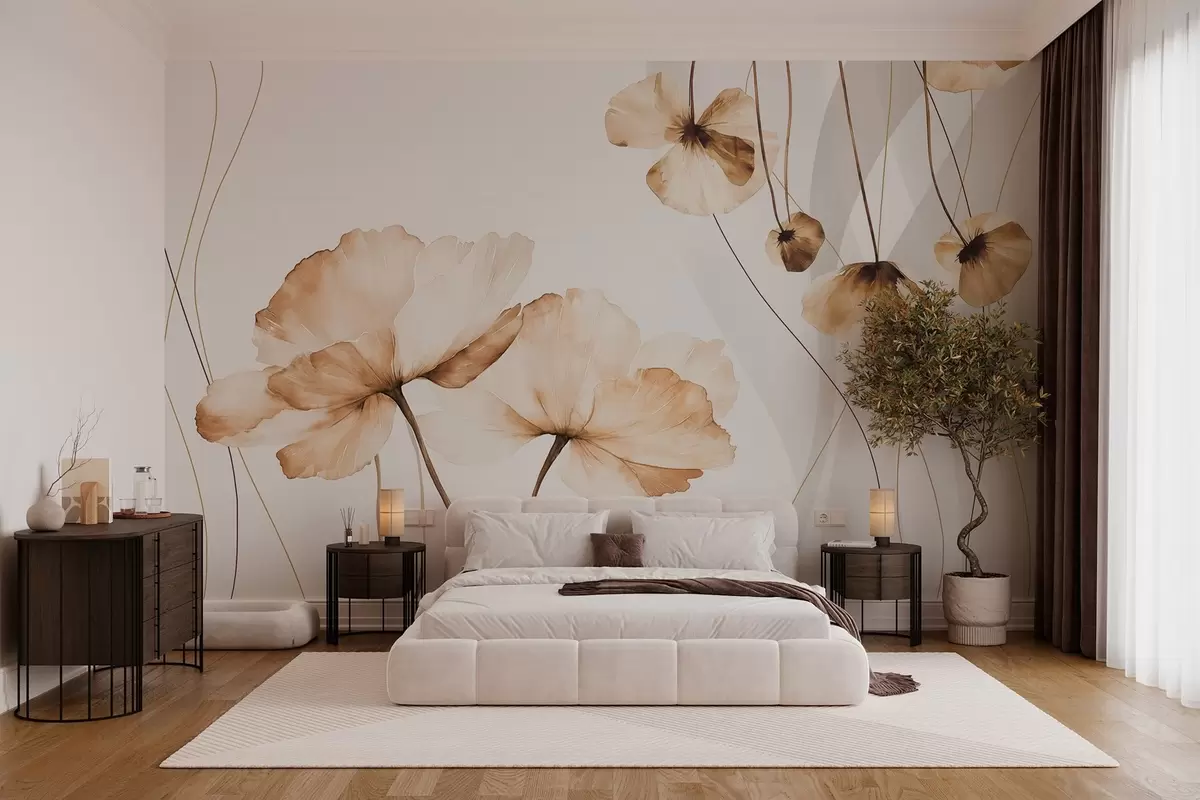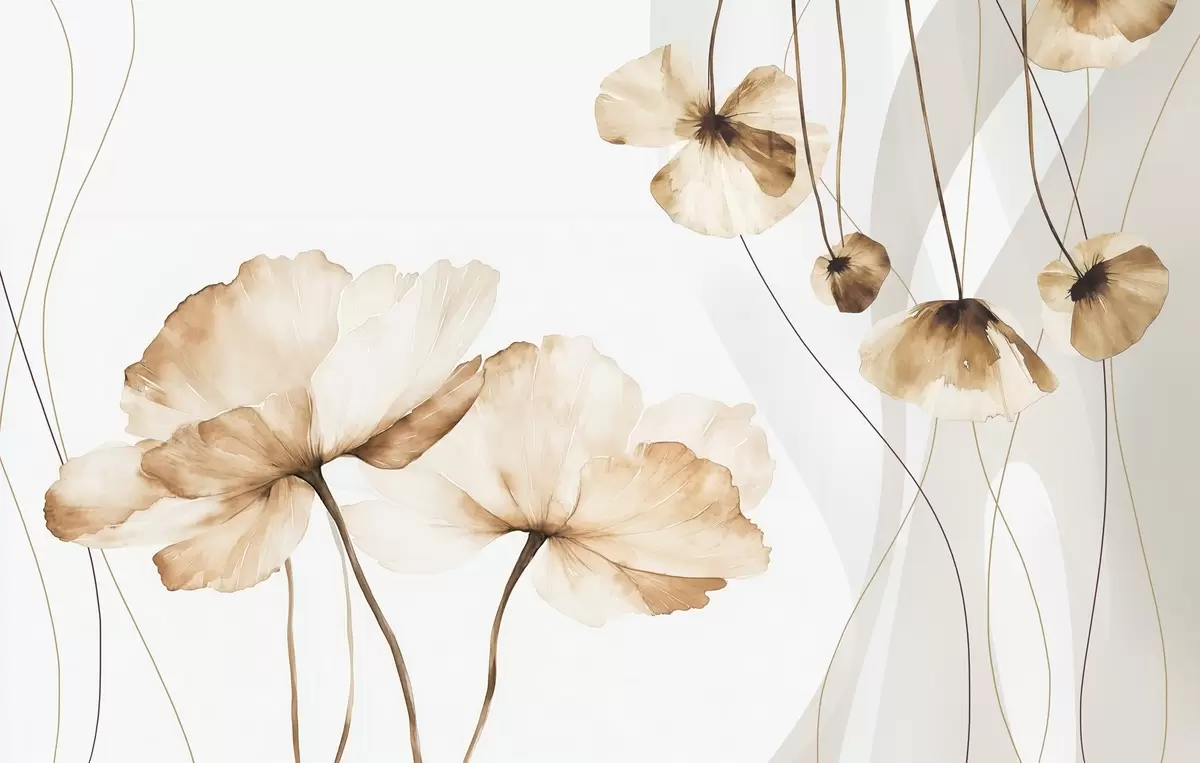 Zidne murale cvijeće u akvarelu u smeđim tonovima br. w04026