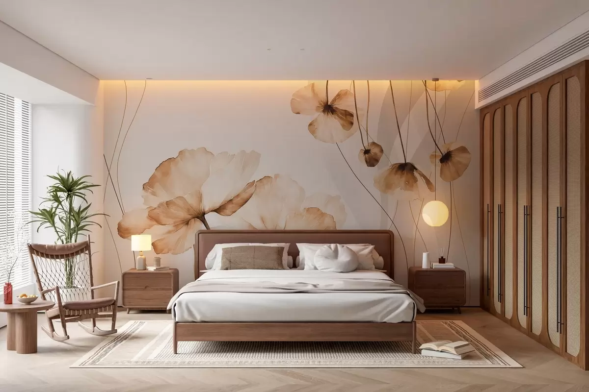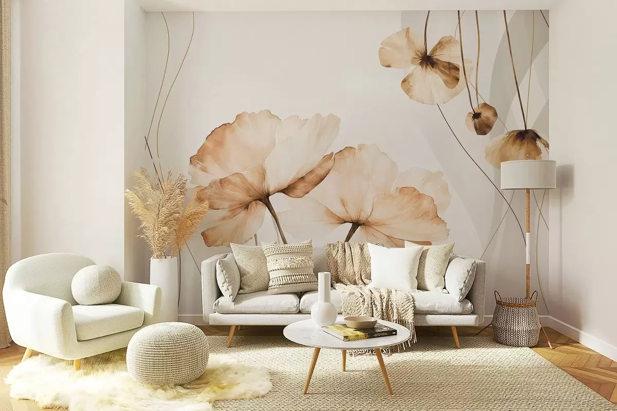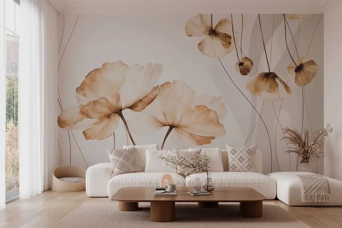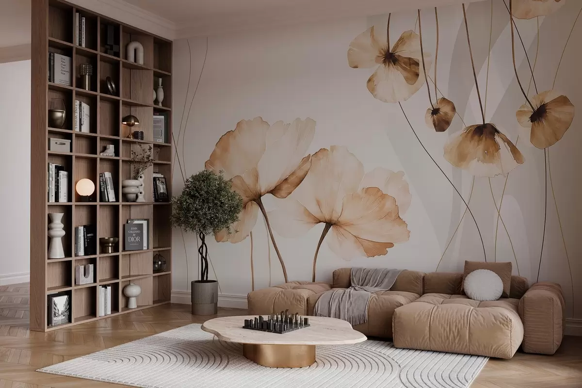 Zidne murale cvijeće u akvarelu u smeđim tonovima br. w04026