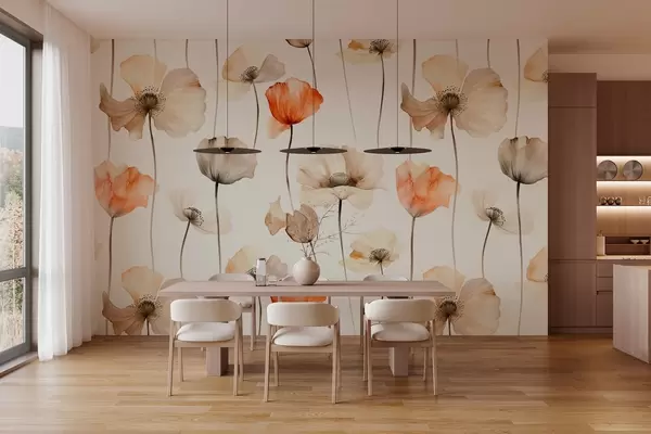 Zidne murale kovrčavi makovi u stilu akvarela br. w04031