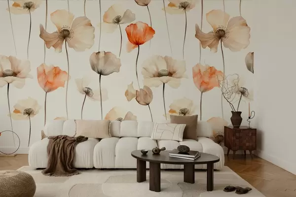 Zidne murale kovrčavi makovi u stilu akvarela br. w04031