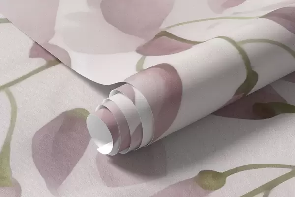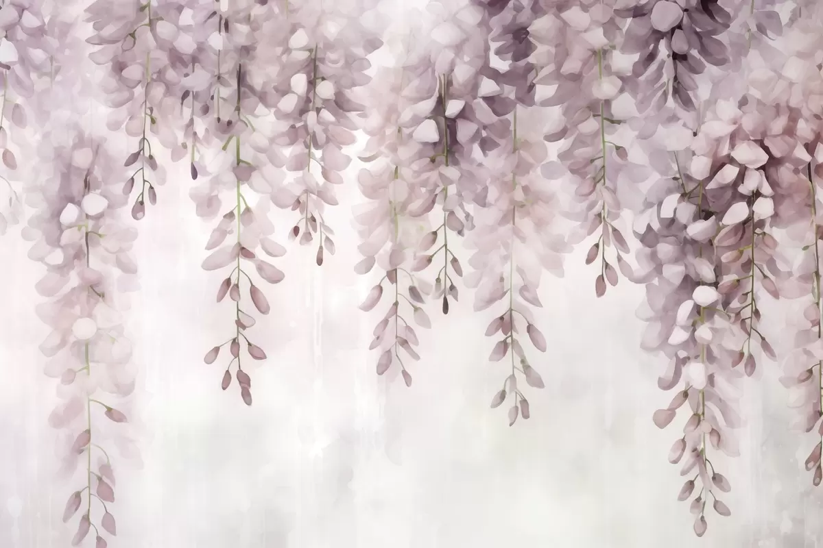 Zidne murale Nježni akvarelni prizor u kremasto ružičastim tonovima, s kaskadnim grozdovima glicinije koji tvore sanjivu cvjetnu zavjesu br. w04034v2