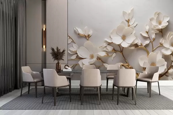 Zidne murale Elegantno reljefno cvijeće s mekim stabljikama stvara miran, skladan prizor br. w04039