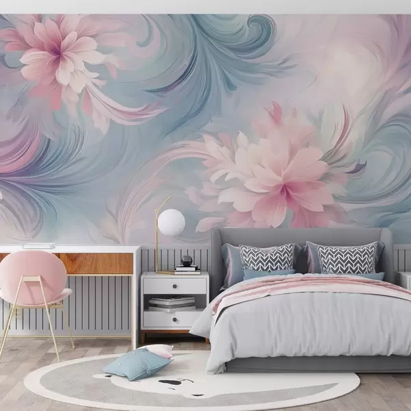 Zidne murale Cvijeće i lišće u ružičastoj i plavoj boji br. w04048