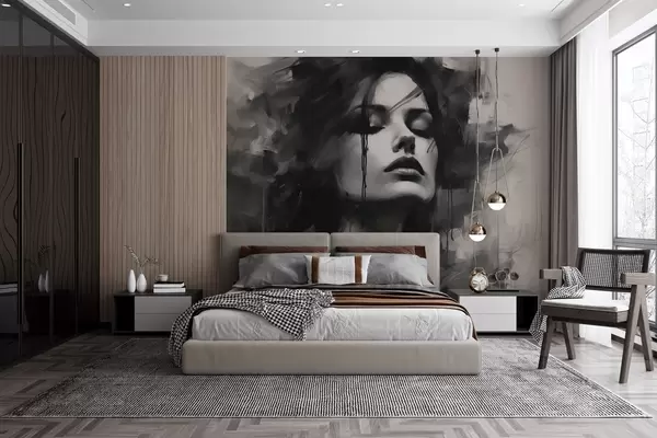 zidne murale Portret žene u sivoj i crnoj odjeći w04049