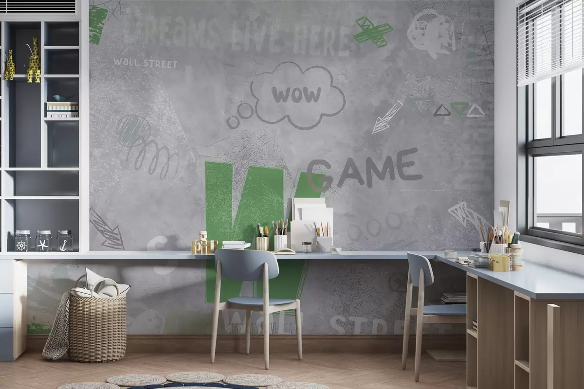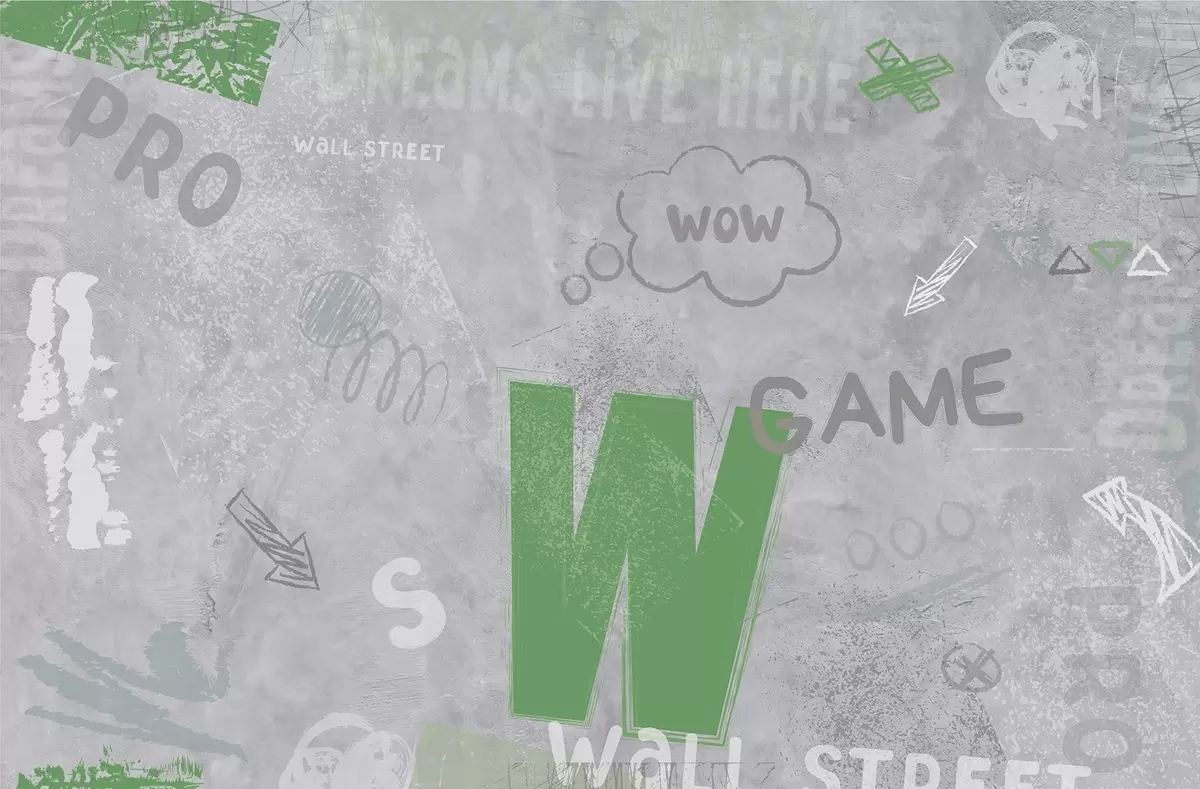 Zidne murale Dizajn ulične umjetnosti sa zelenim slovima na pozadini betonskog zida br. w04056v2