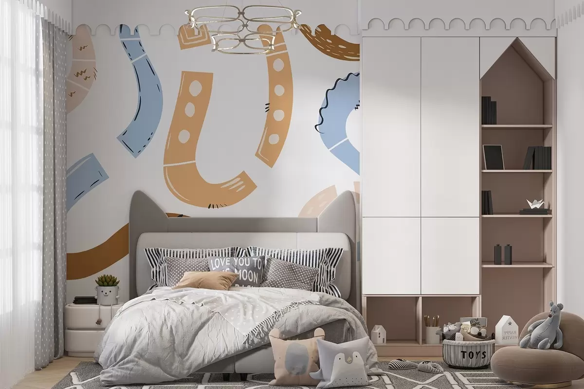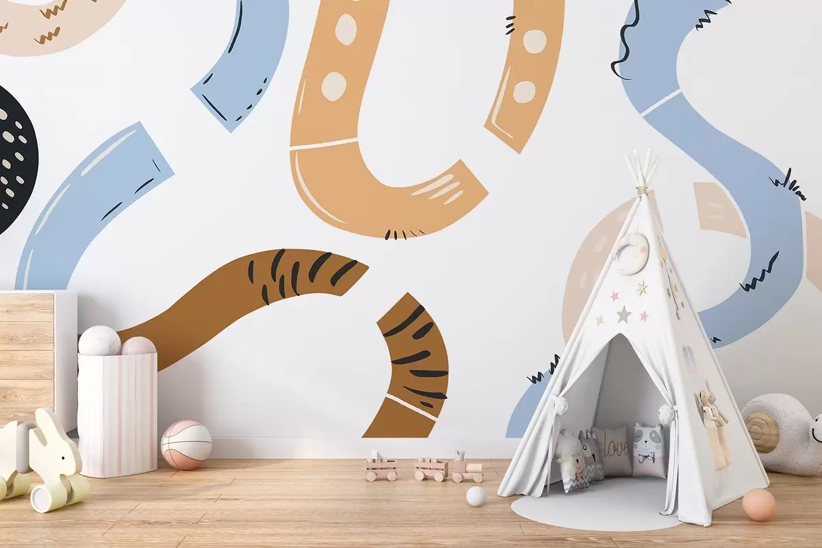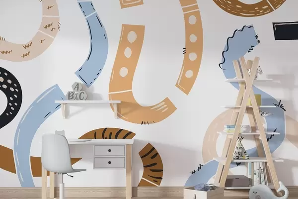 Zidne murale Apstraktni crteži, maloljetnički, crteži, smeđa, plava, ružičasta br. w04066