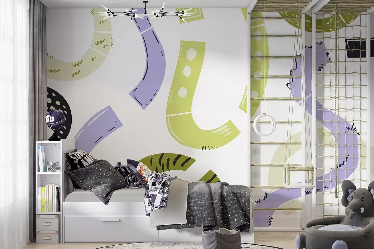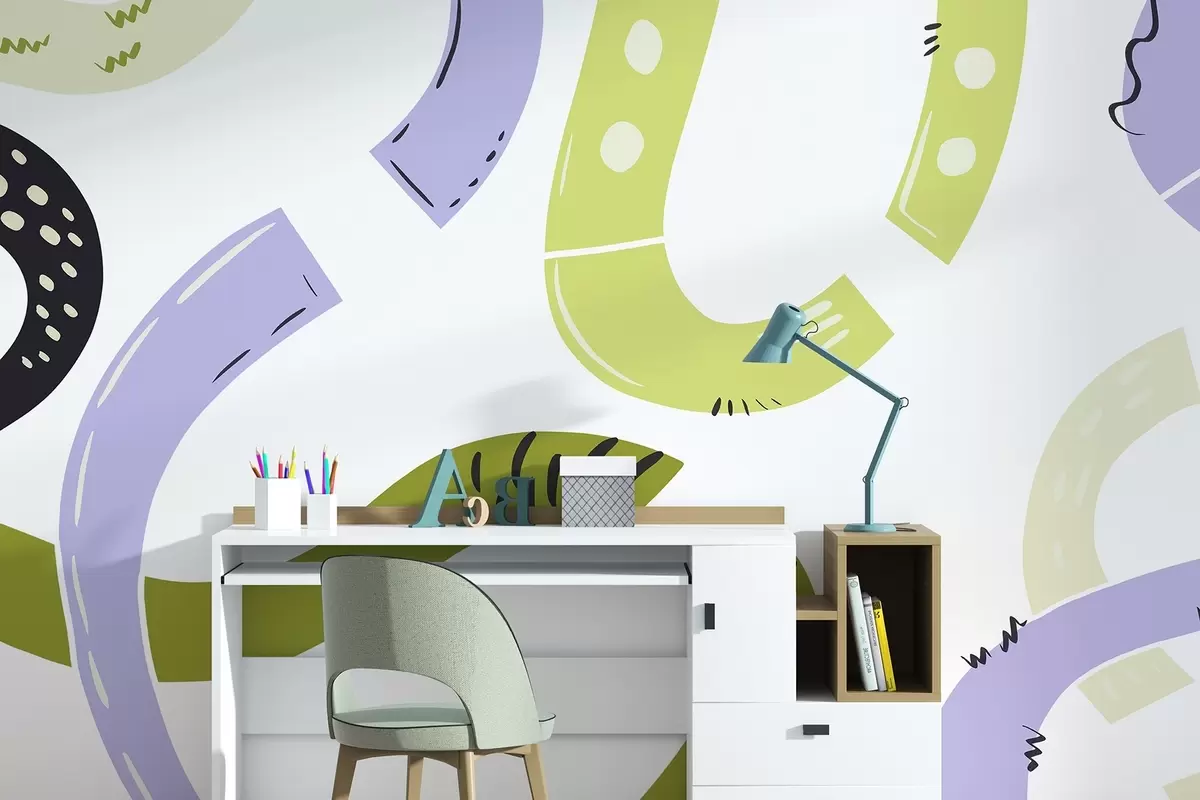 Zidne murale Apstraktni crteži, maloljetni, crteži, zeleni, ljubičasti br. w04066v1