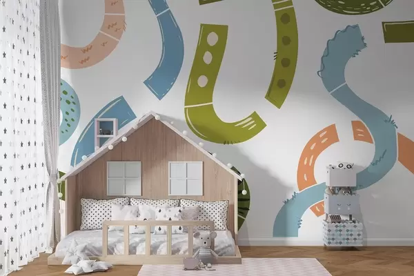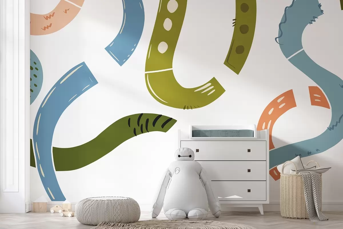 Zidne murale Apstraktni crteži, maloljetni, crteži, zelena, plava, ružičasta br. w04066v2