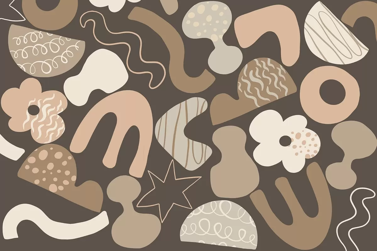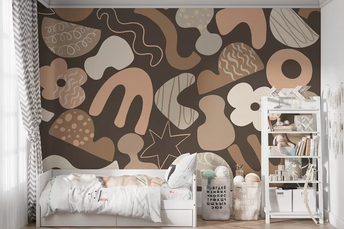 Zidne murale Geometrijski likovi s crtežima, maloljetni, tamnobež pozadina br. w04068v1
