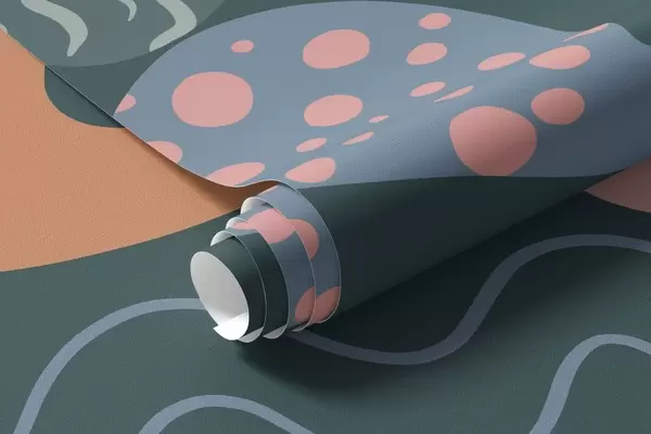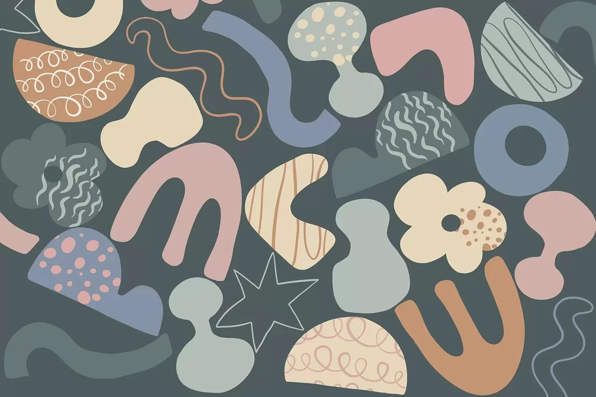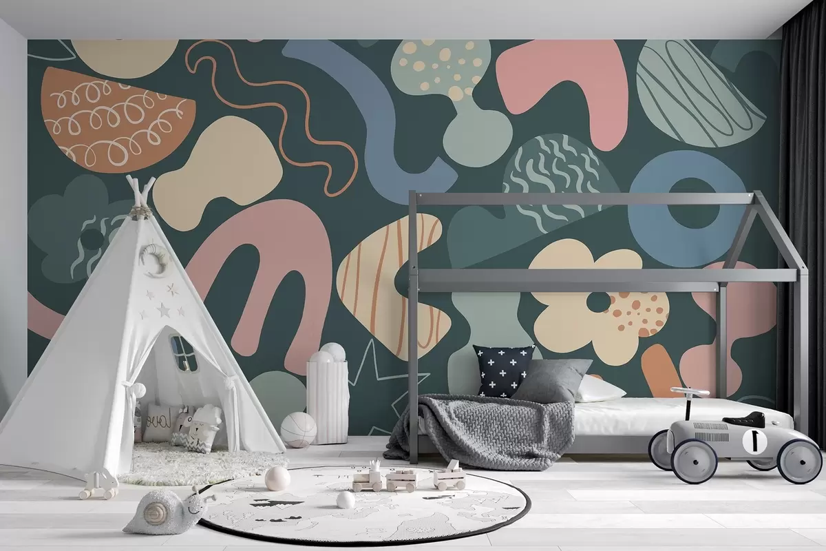 Zidne murale Geometrijski likovi s crtežima, maloljetnici, tamnozelena pozadina br. w04068v3