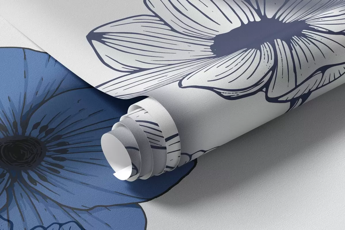Zidne murale Siluete balerina, rustikalno cvijeće, linijska umjetnost, plave boje br. w04069v3