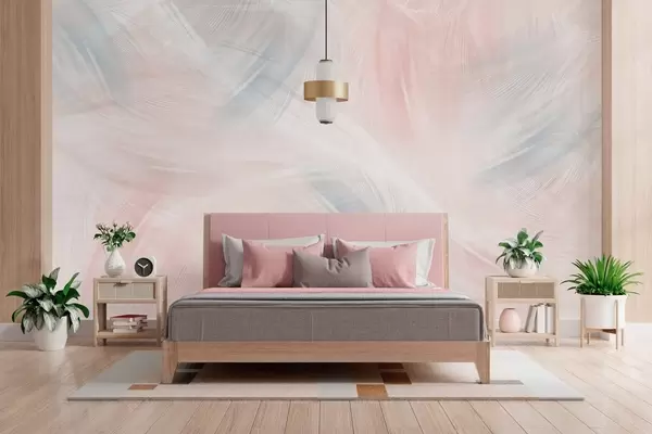 Zidne murale prozračno perje u nijansama ružičaste i plave br. w04071