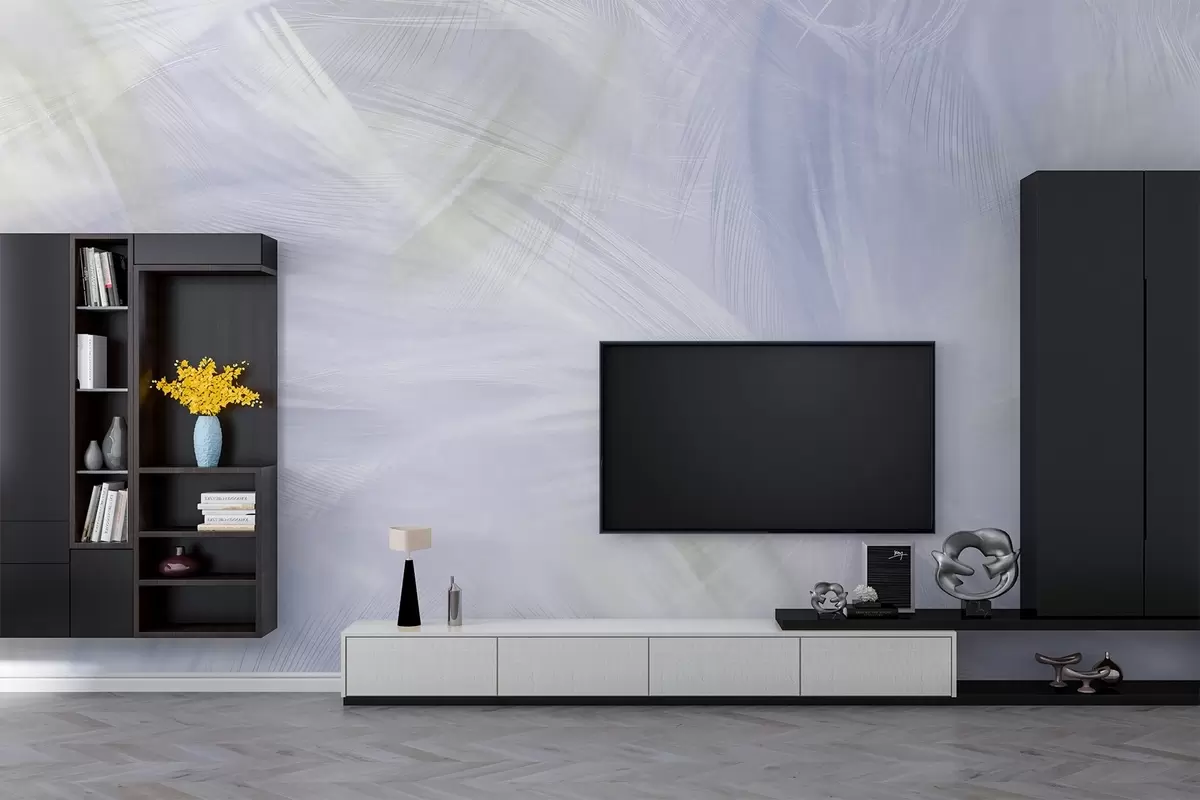 Zidne murale prozračno perje u nijansama bež i plave br. w04071v1