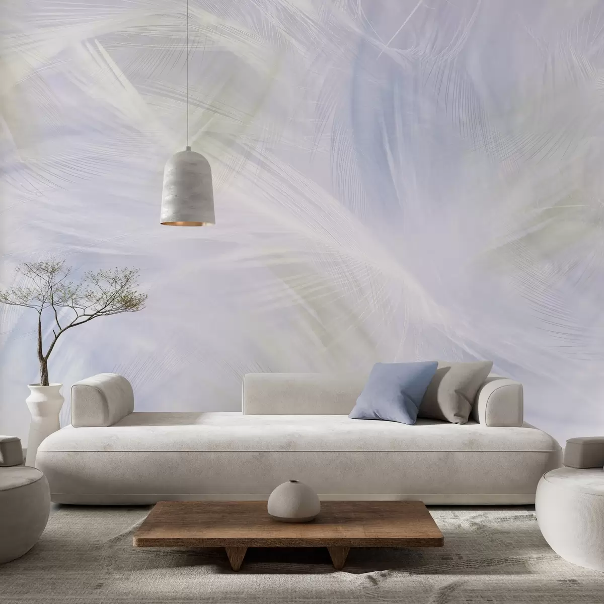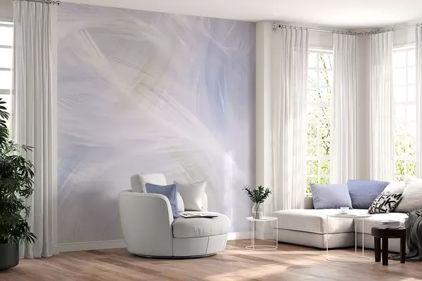 Zidne murale prozračno perje u nijansama bež i plave br. w04071v1