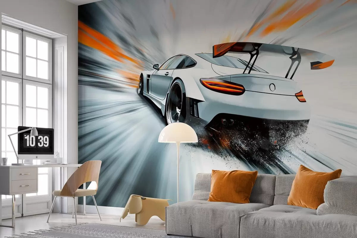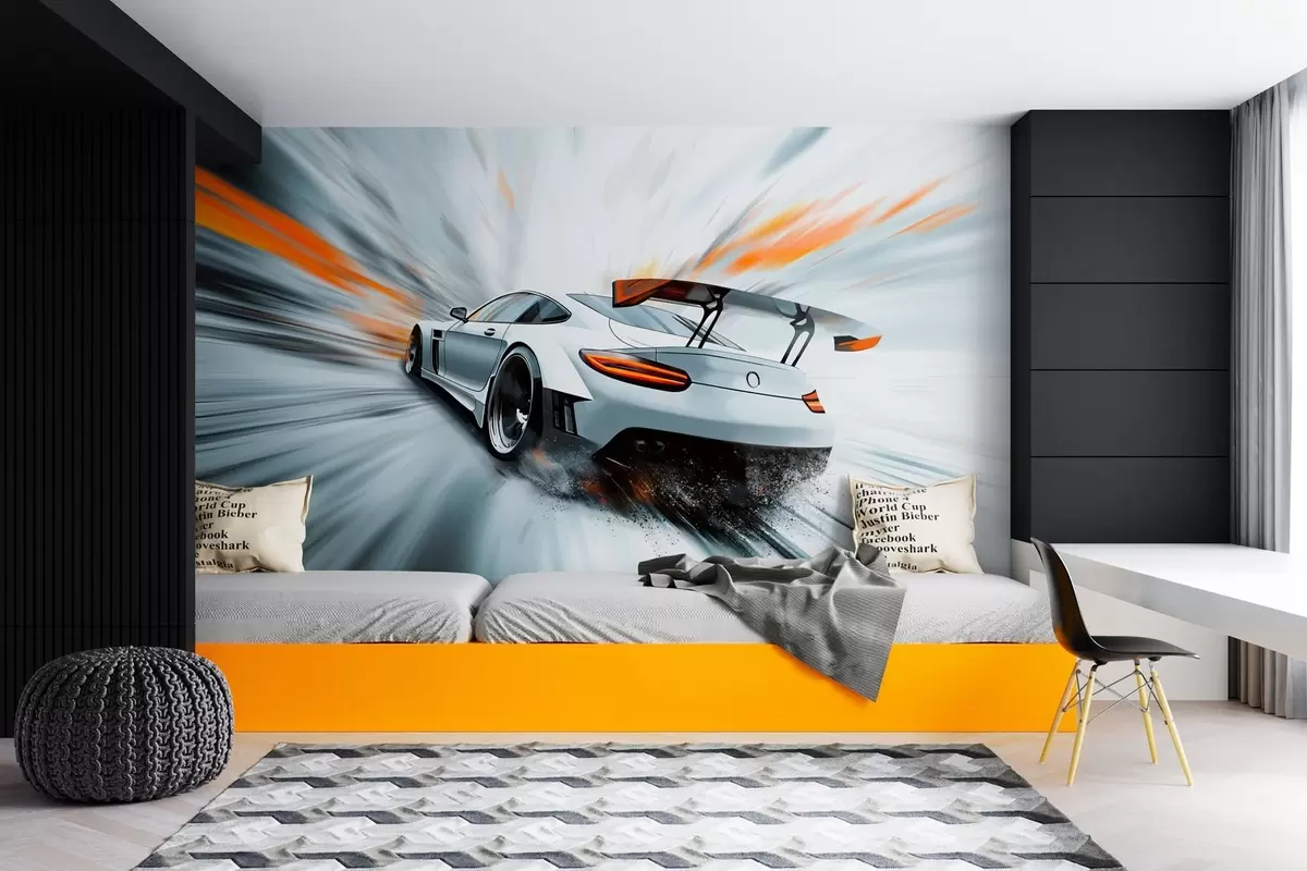 Zidne murale dinamičan sportski automobil koji juri kroz svemir br. w04074