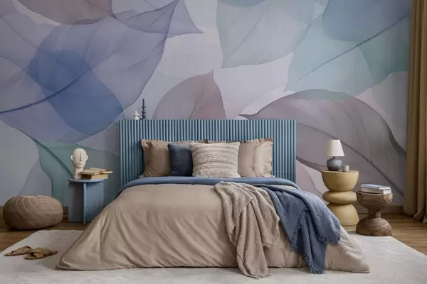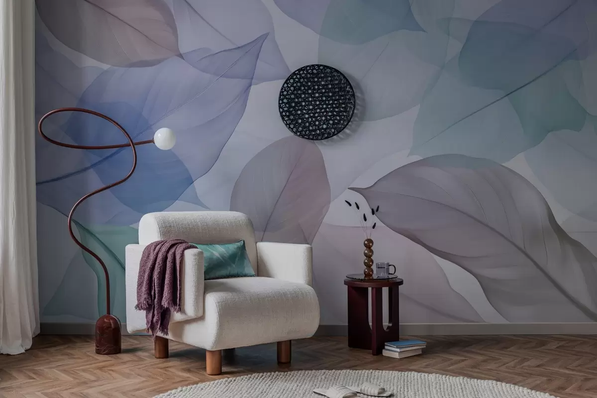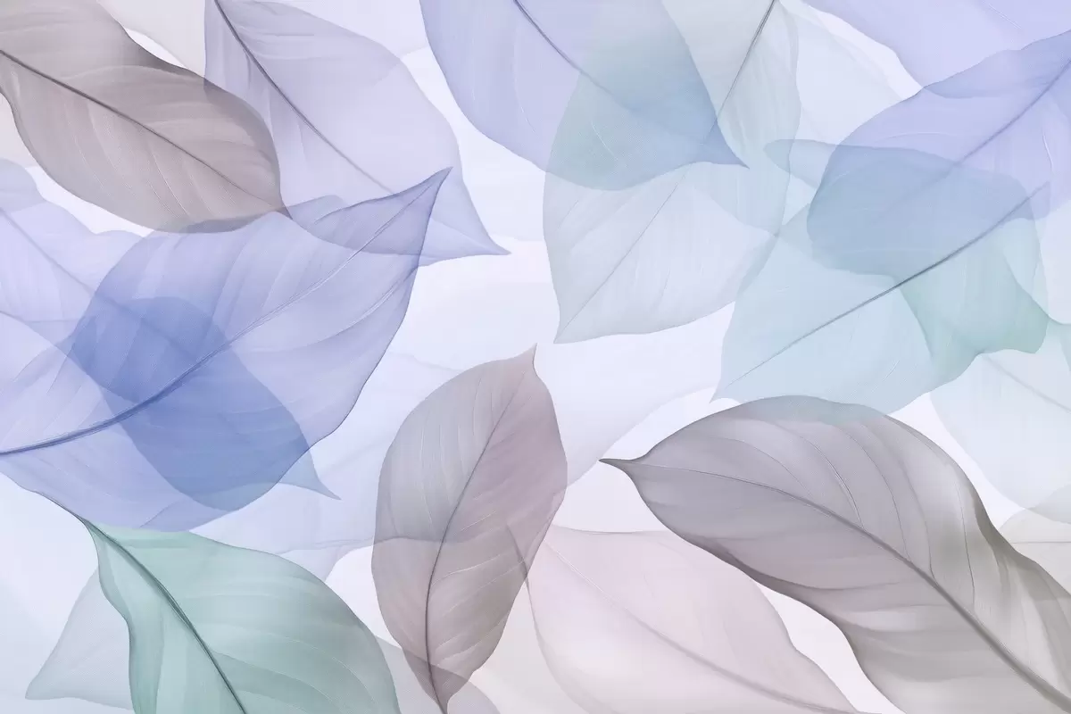 Zidne murale Prozirni listovi s žilama u plavim i smeđim tonovima br. w04075