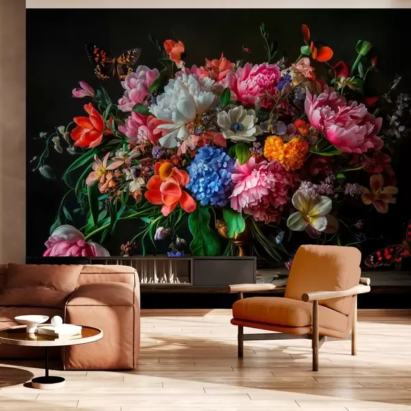 Zidne murale Buket u stilu nizozemskog uljanog slikarstva XVII stoljeća s luksuznom cvjetnom kompozicijom. br. w04078