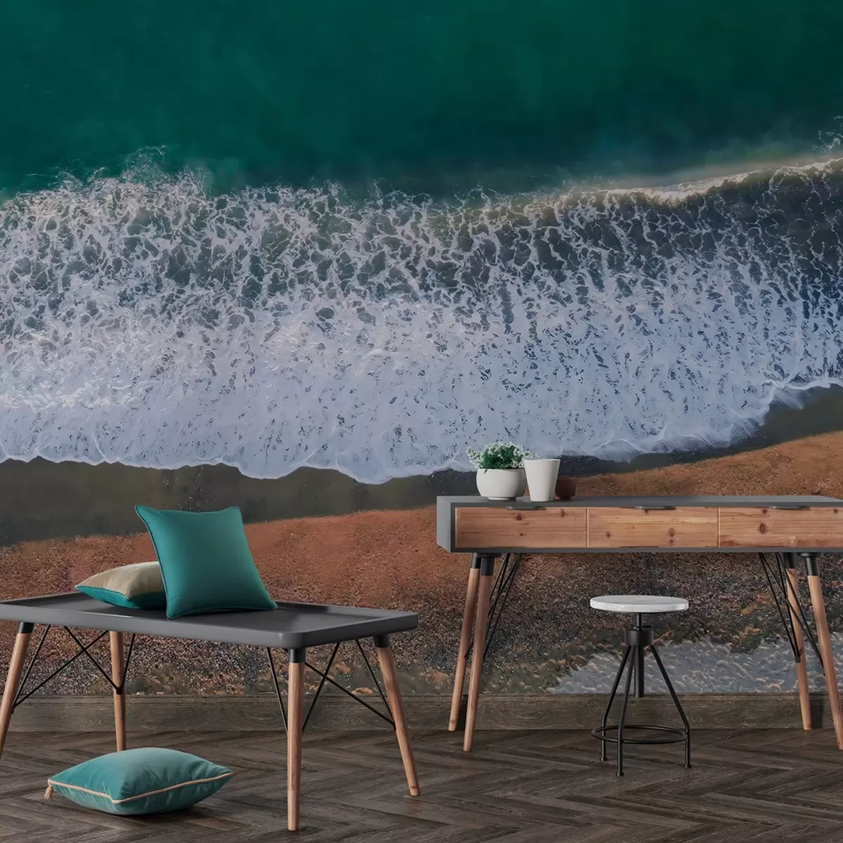 zidne murale oceanski valovi, plaža, zračna fotografija, realizam, ljeto w04095