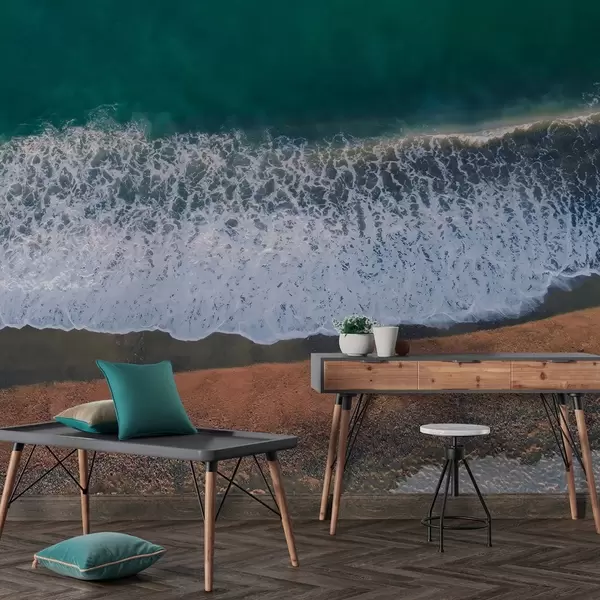 Zidne murale oceanski valovi, plaža, zračna fotografija, realizam, ljeto br. w04095