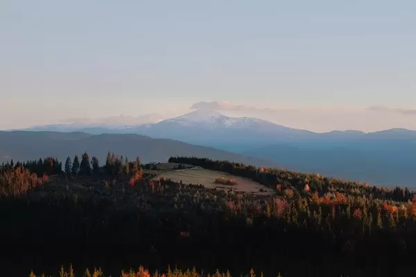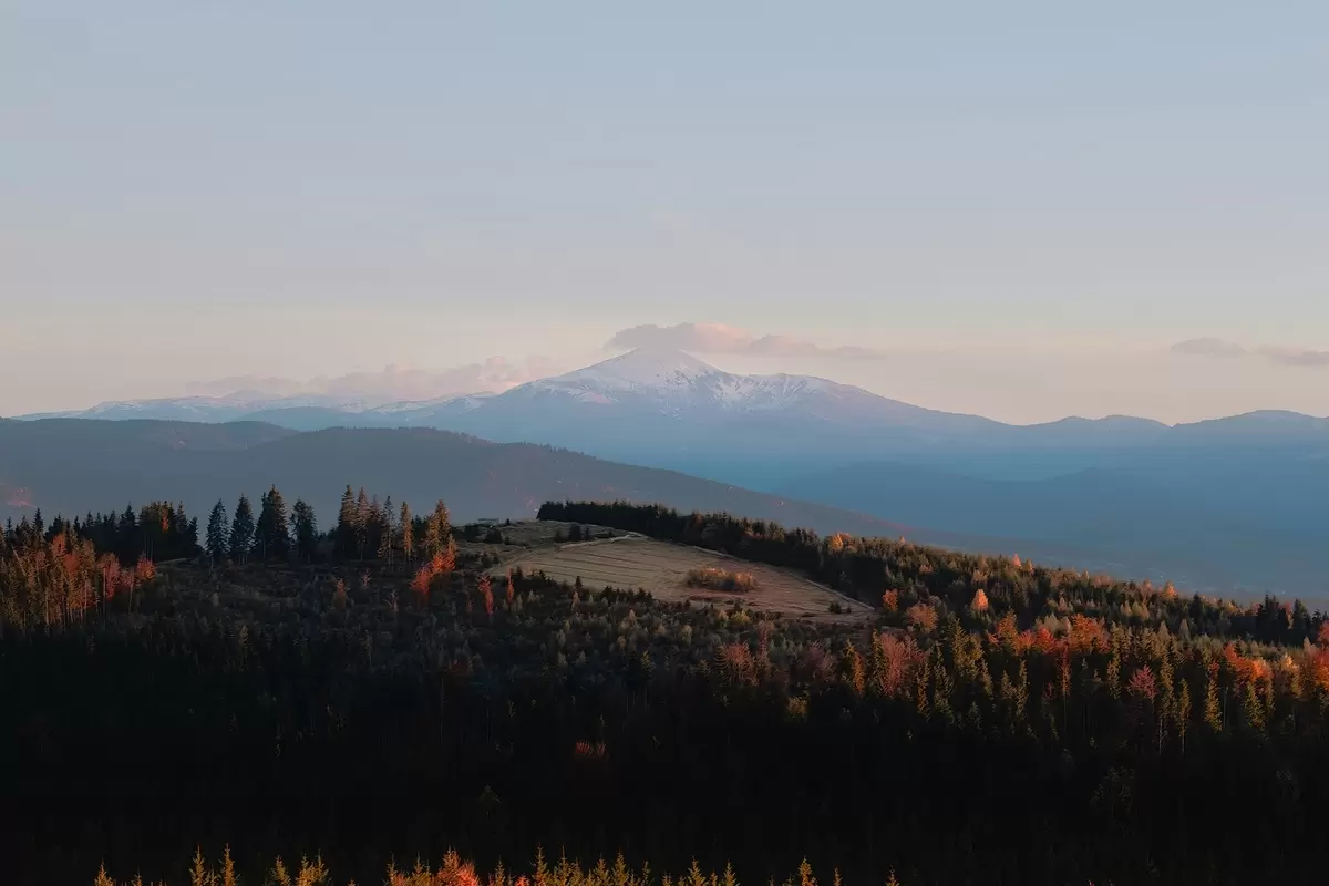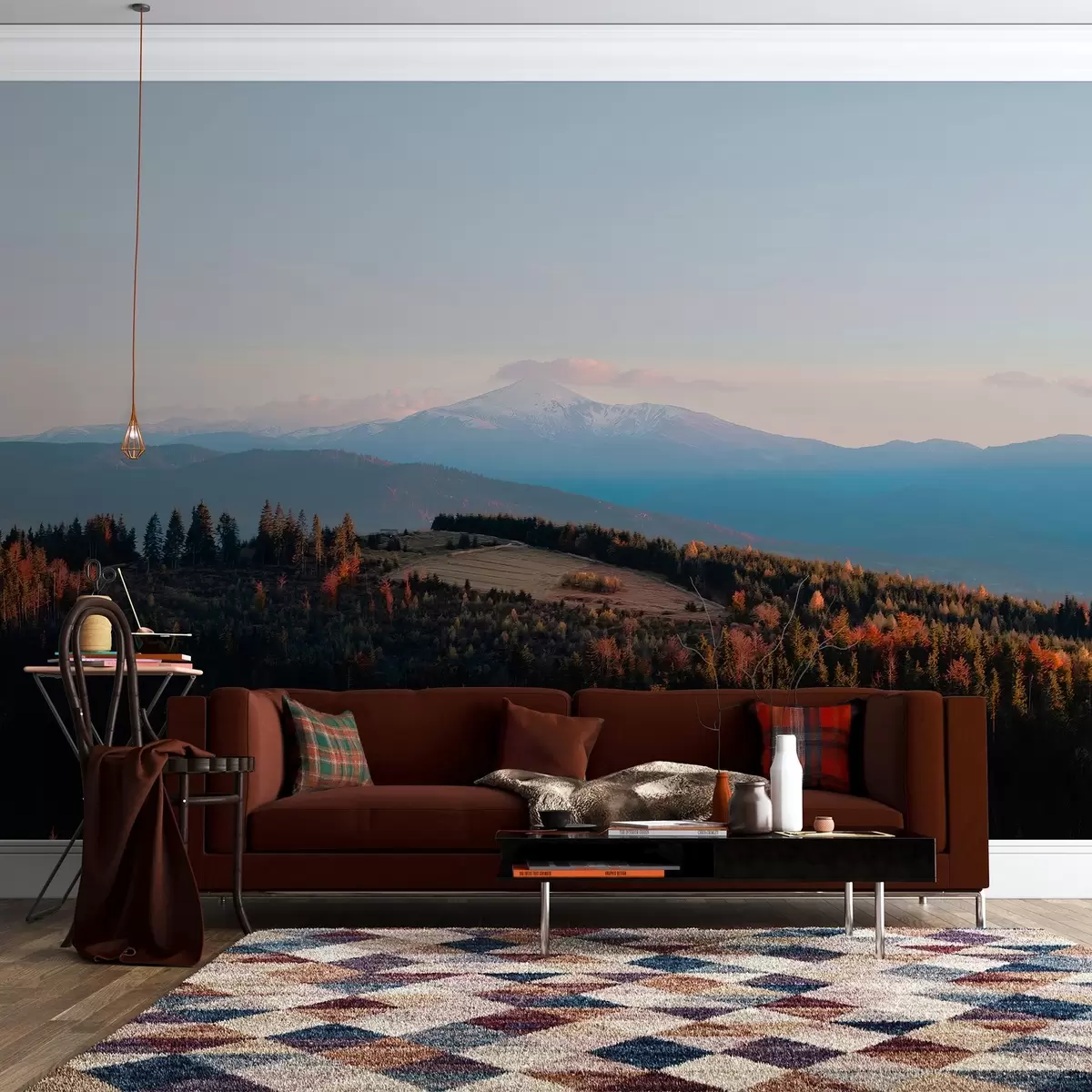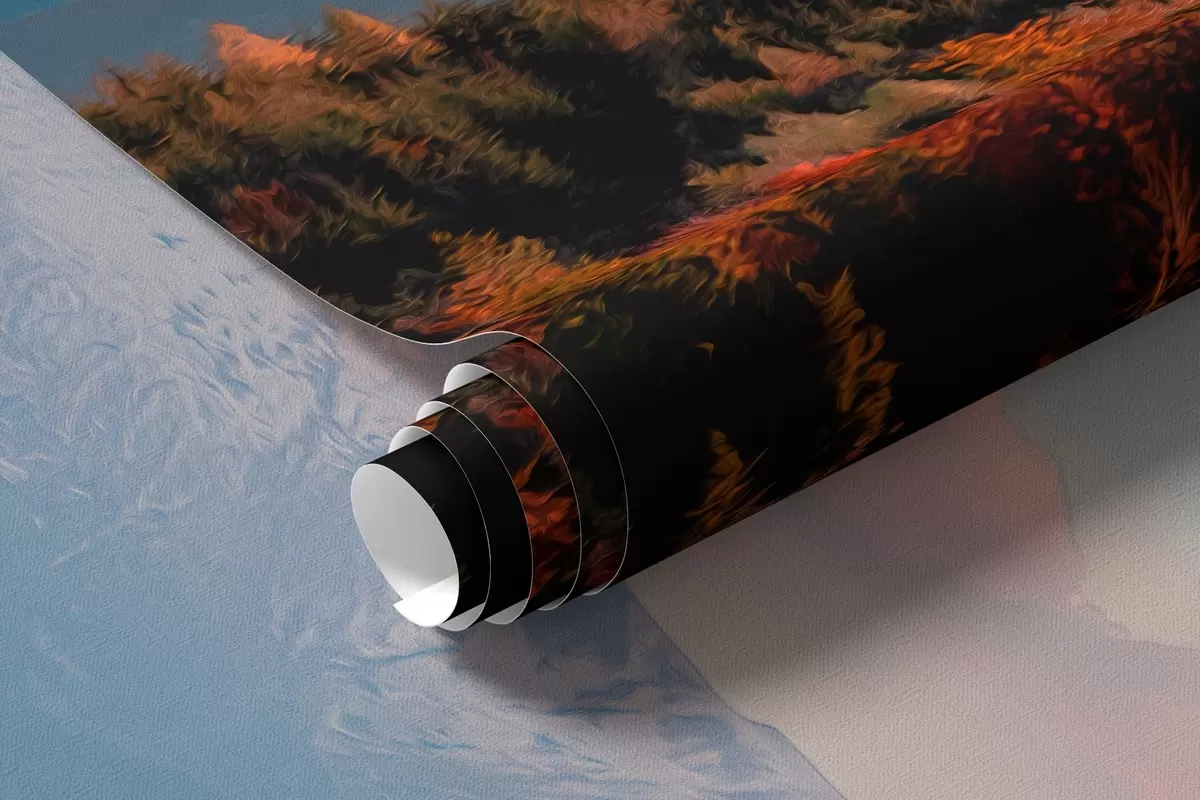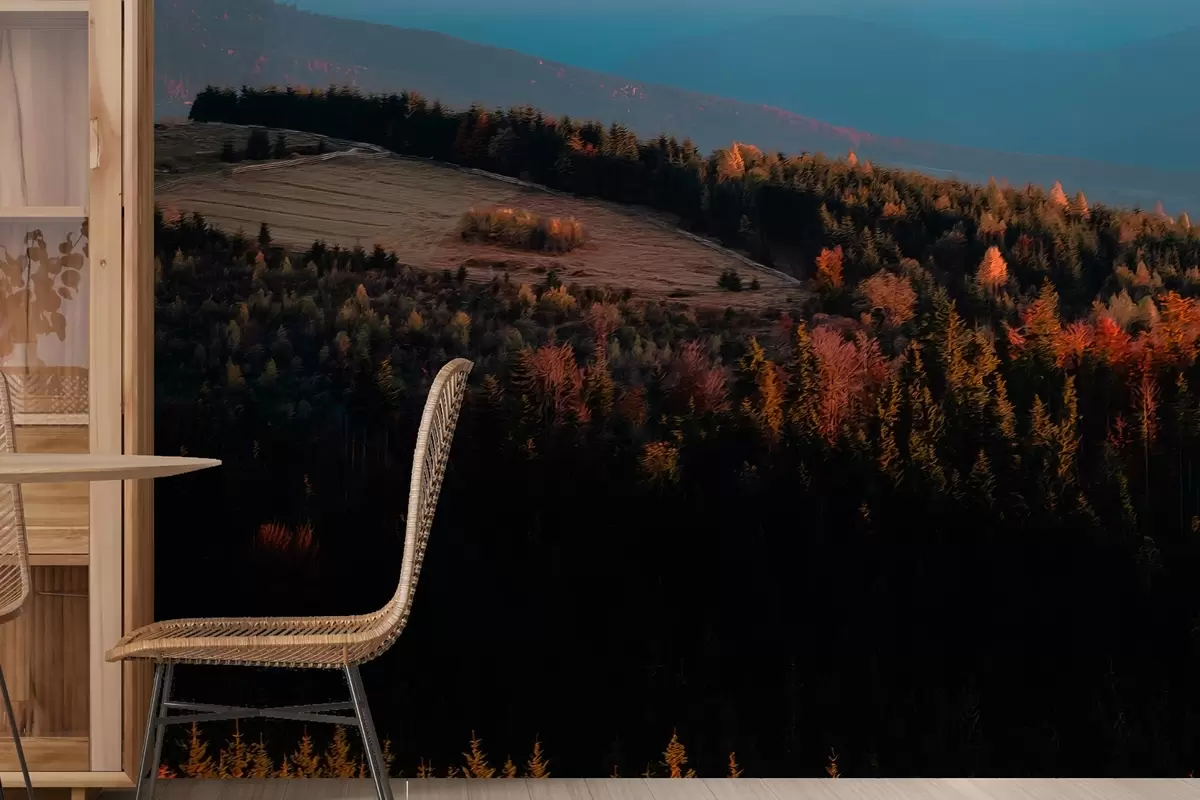 Zidne murale Karpati, tekstura uljanog stila, jesenska šuma, zalazak sunca br. w04098