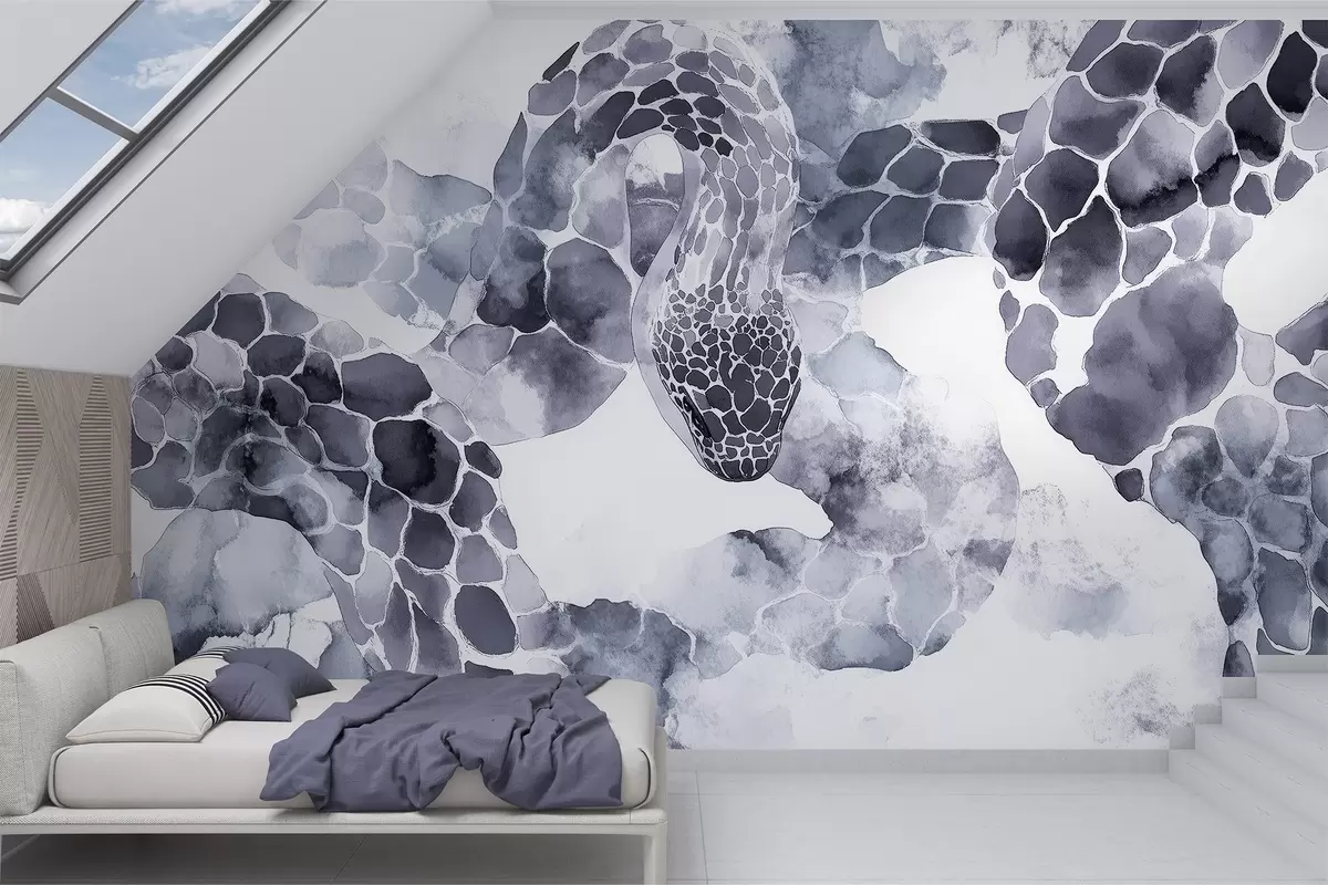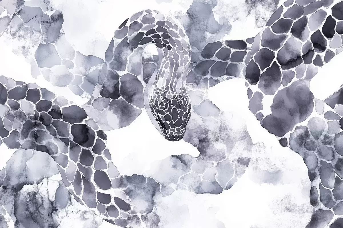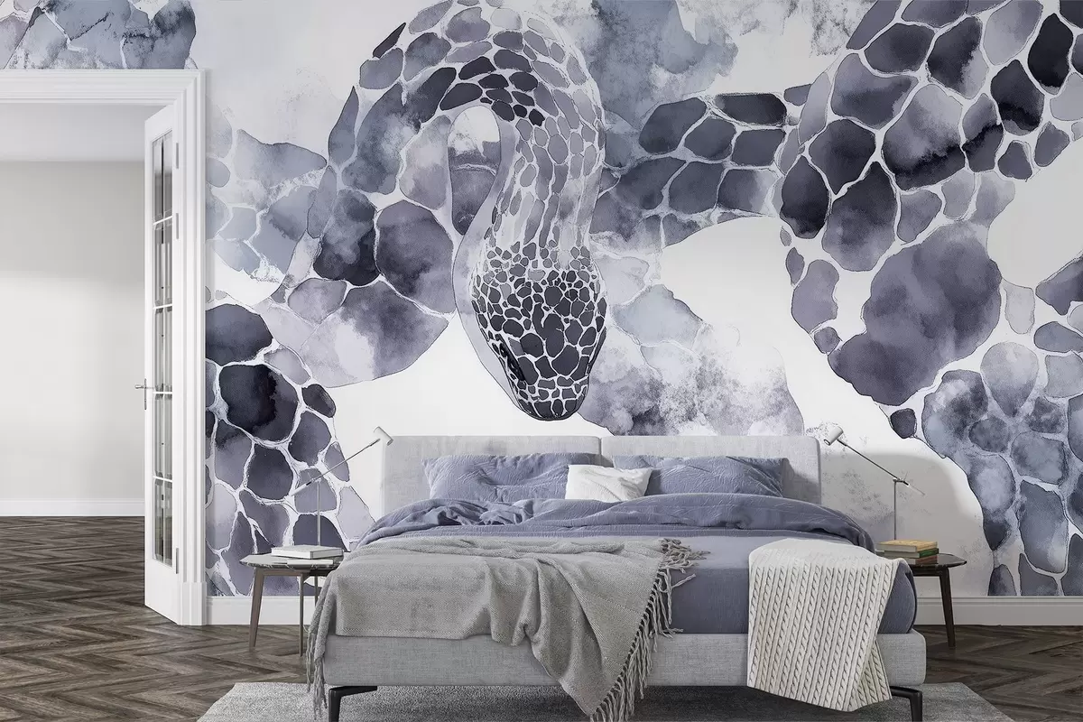 Zidne murale Silueta zmije, akvarelni stil, plave boje br. w04113
