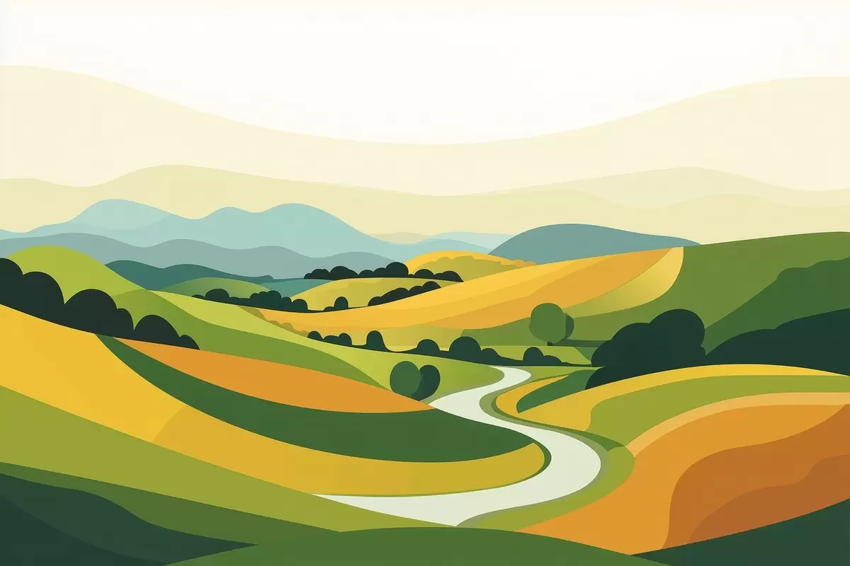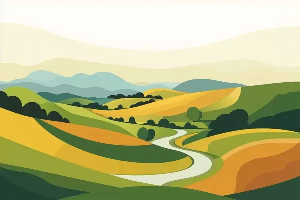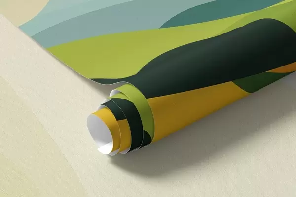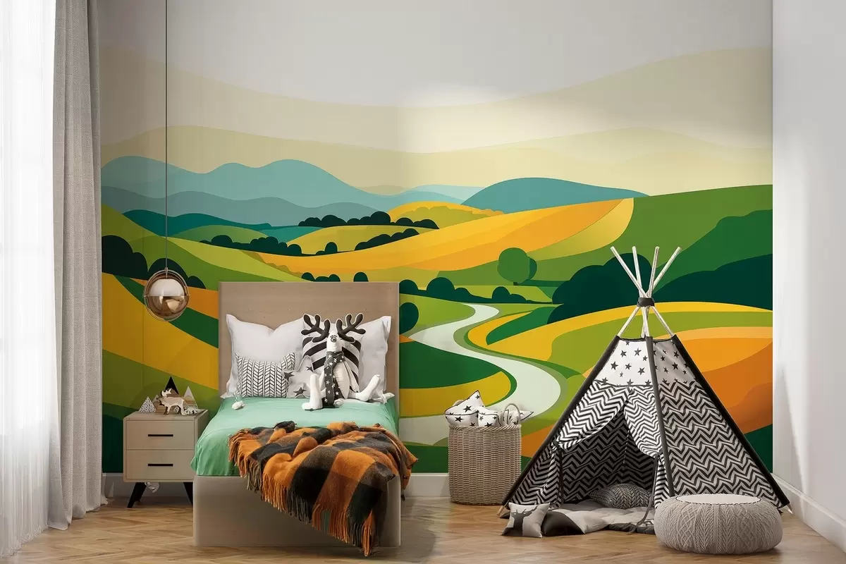 Zidne murale Apstraktni krajolik s brdima i drvećem, živih boja br. w04116