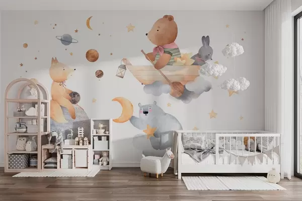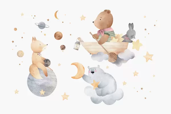 Zidne murale Bajkovite životinje među oblacima i zvijezdama br. w04123