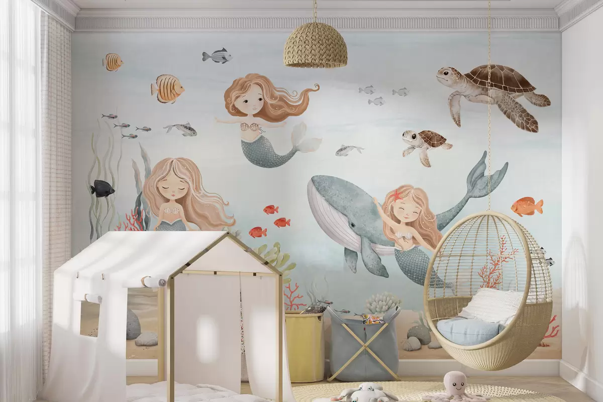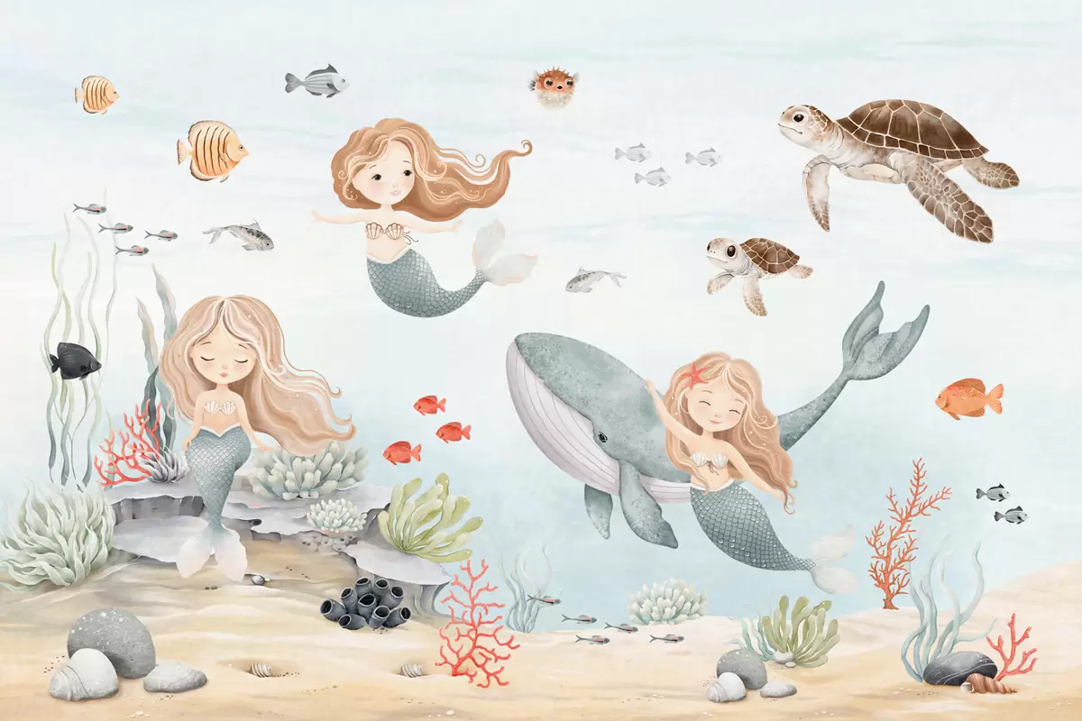 Zidne murale Podvodni svijet sa sirenama i ribama br. w04166