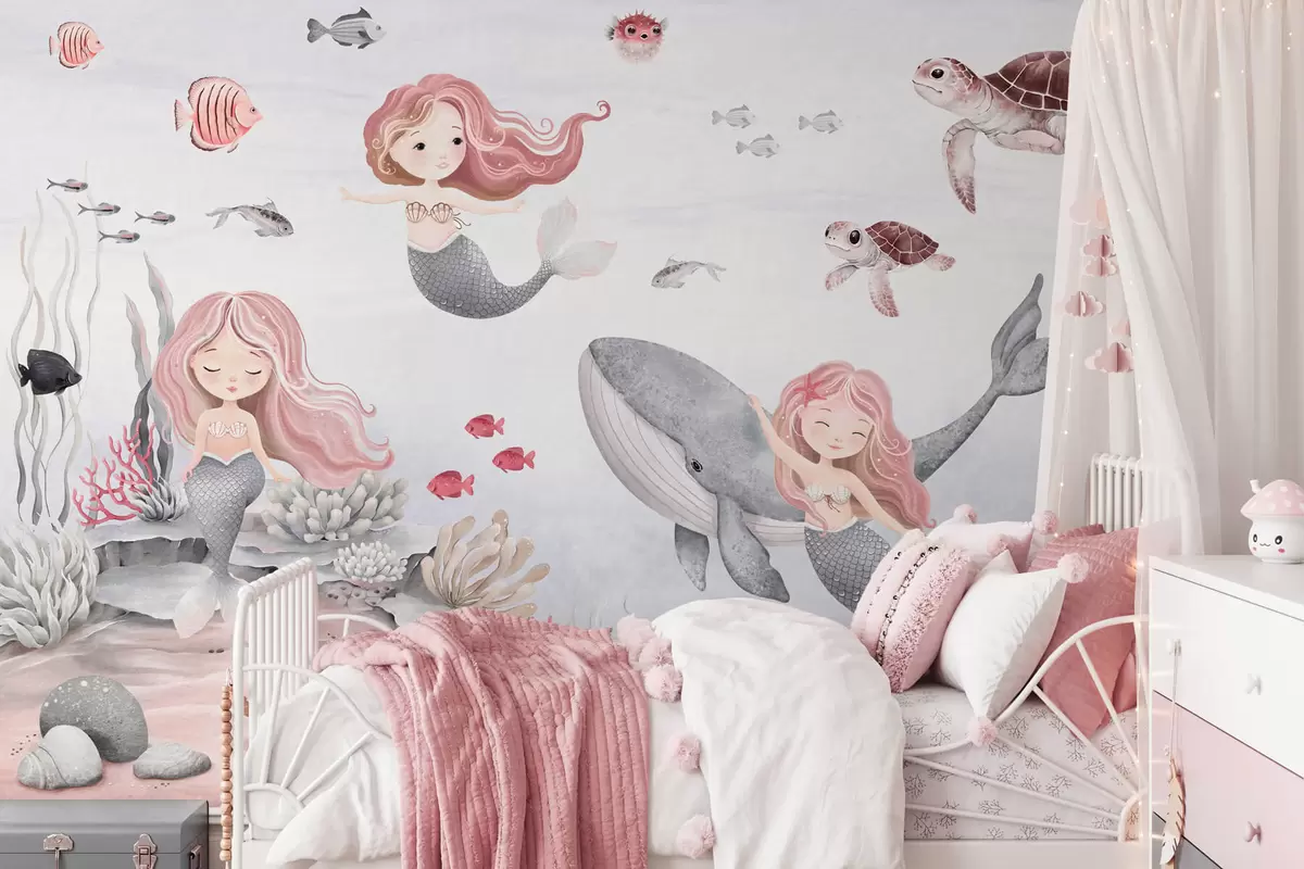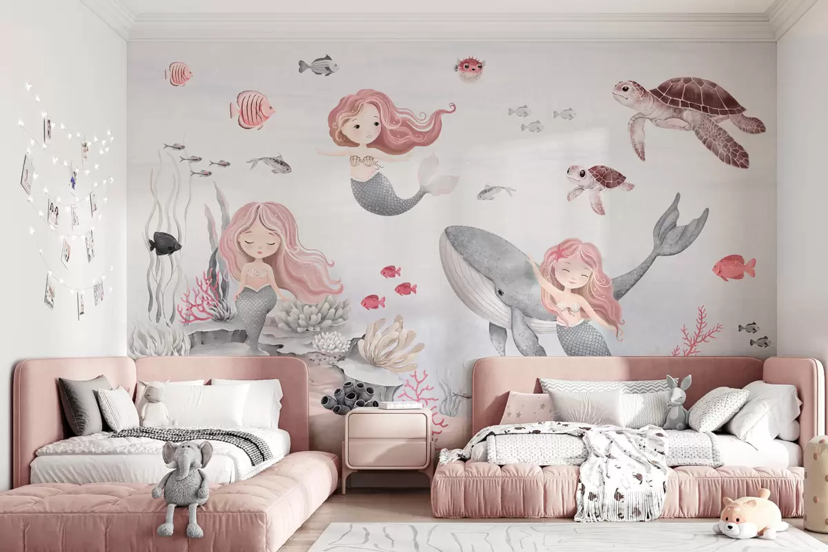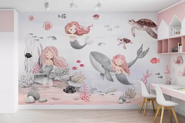 Zidne murale Podvodni svijet sa sirenama i ribama br. w04166v1