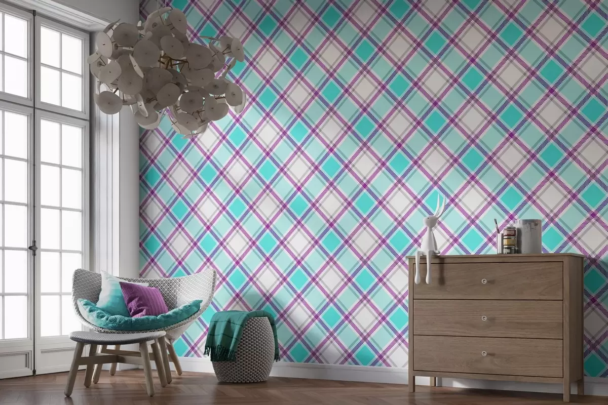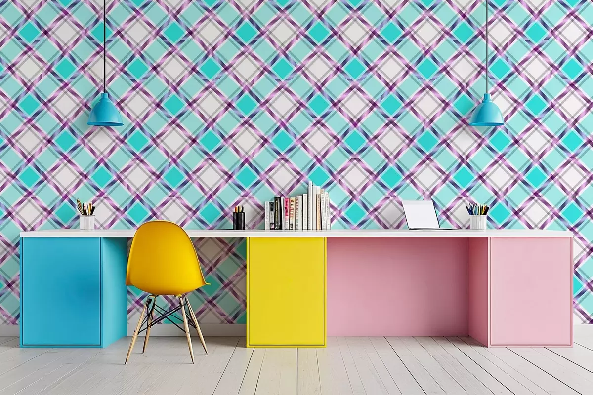 Zidne murale karirani uzorak u plavim tonovima br. w04167