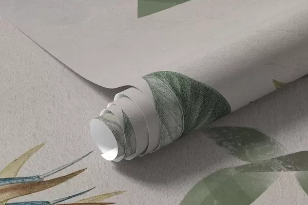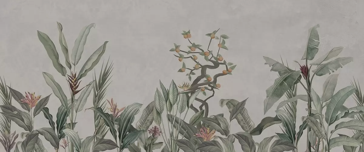 Zidne murale Tropska kompozicija s biljkama i drvećem na sivkastoj pozadini br. w04201v1