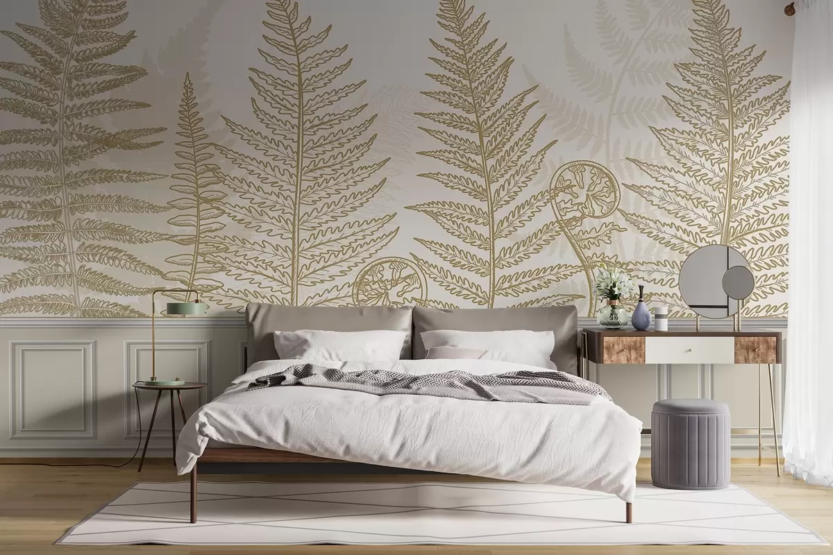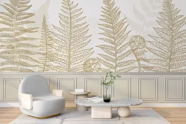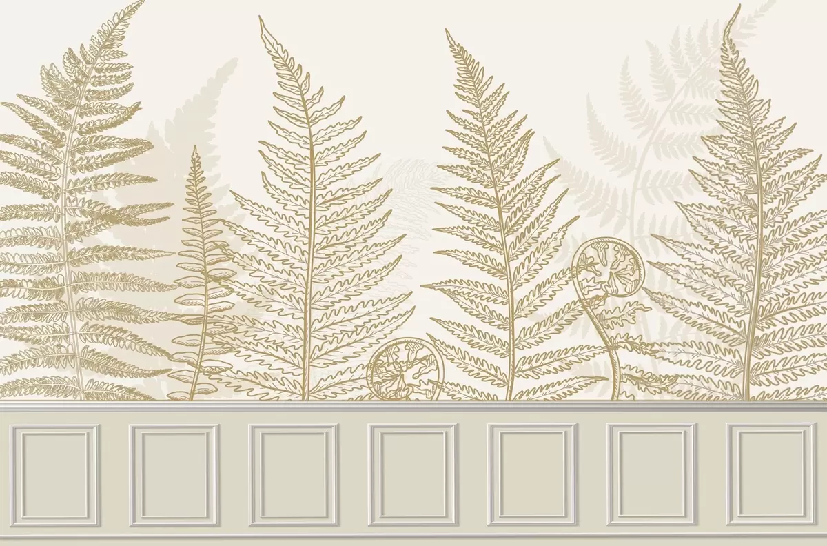 Zidne murale lišće, biljke, paprat, svjetlo, botanički, grafički br. w04239