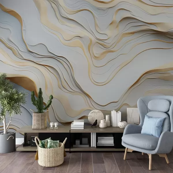 Zidne murale slojevi, valovi, apstrakcija, bež, siva, glatkoća, moderno br. w04255