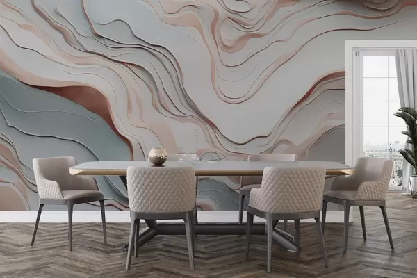 Zidne murale slojevi, valovi, apstrakcija, ružičasta, siva, meki oblici, br. w04255v1