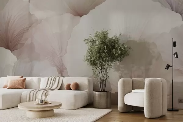 Zidne murale cvijeće, latice, krema, siva, mekoća, mirno br. w04256v1
