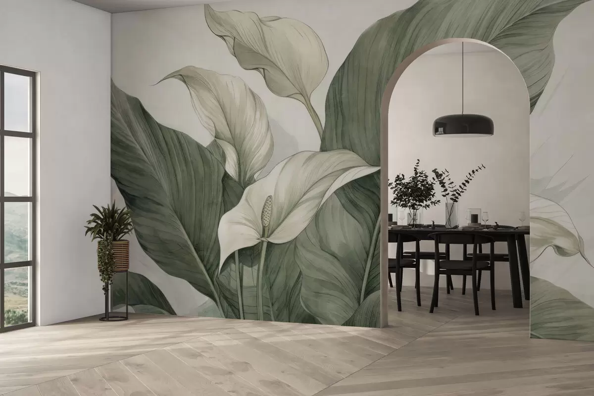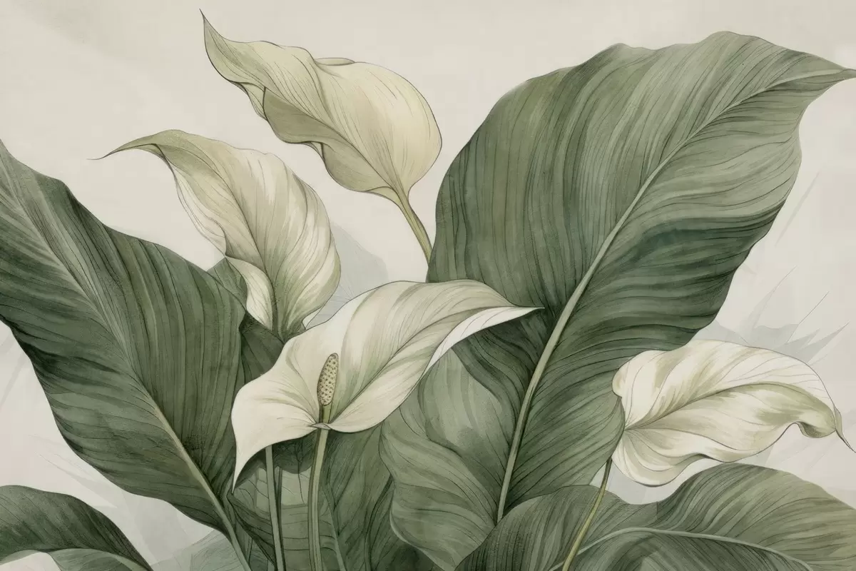 Zidne murale Krupni plan cvjetajućeg spathiphylluma s velikim listovima br. w04263