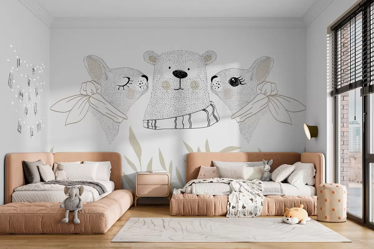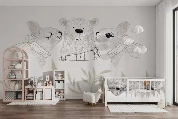 Zidne murale Smiješne životinje, zečevi i medvjedić br. w04269v1