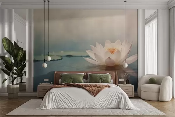 Zidne murale Bijeli lotosov cvijet na vodi br. w04272