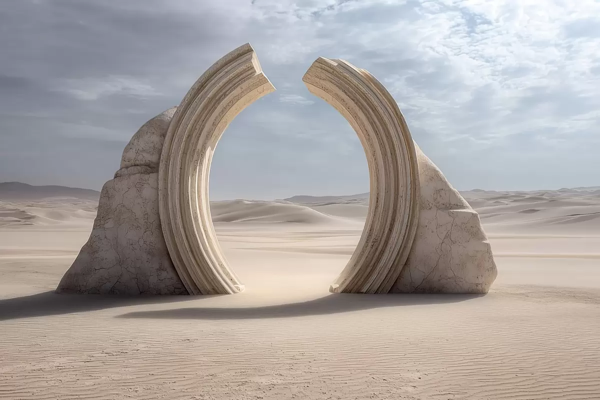 zidne murale nadrealistički pustinjski krajolik s velikim arhitektonskim lukom w04284
