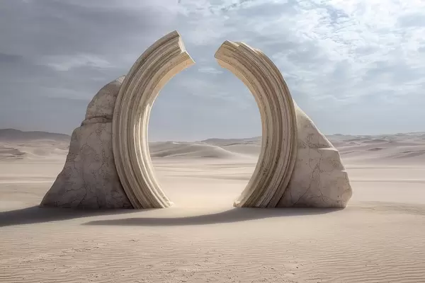 Zidne murale nadrealistički pustinjski krajolik s velikim arhitektonskim lukom br. w04284