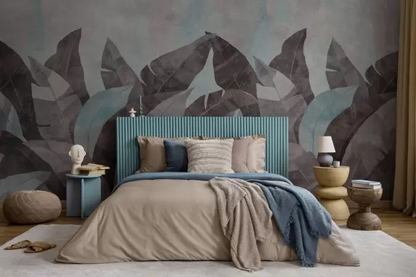 Zidne murale teksturirani listovi banane u nijansama plave i sive br. w04285v2