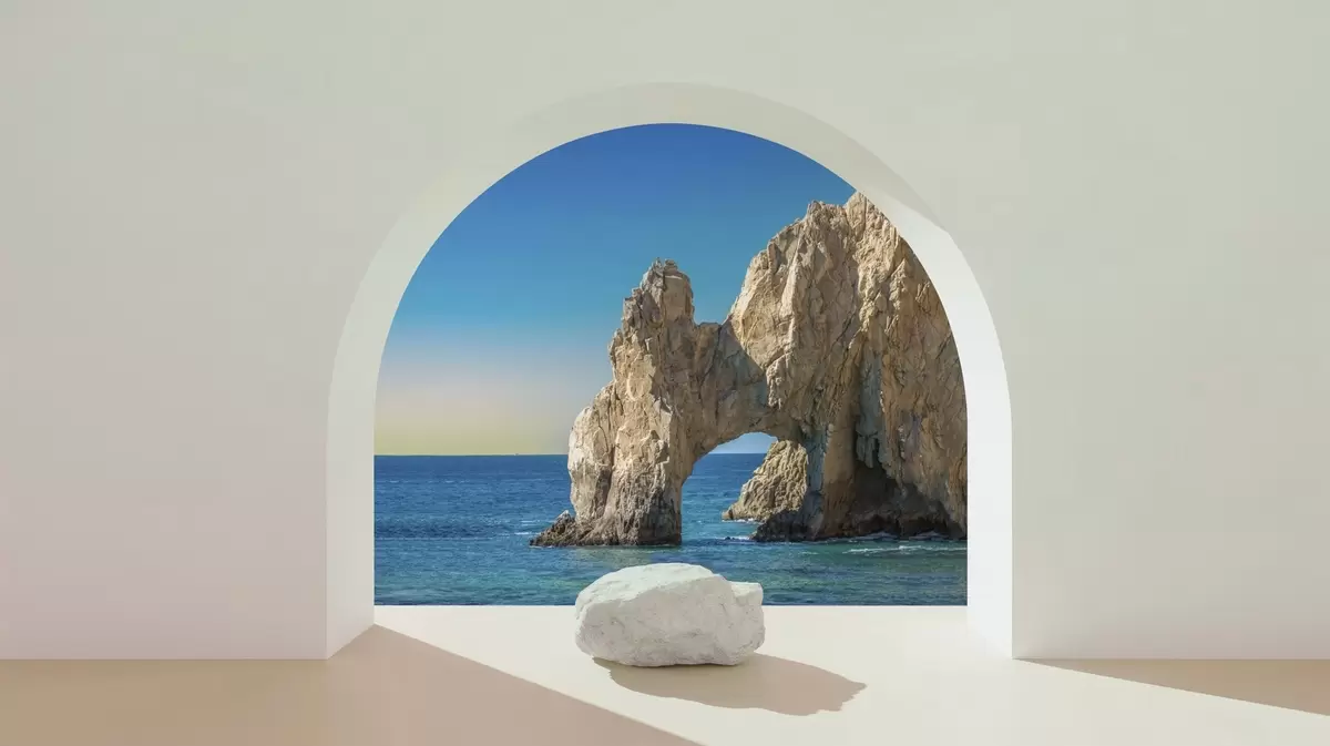 Zidne murale pogled na more i stijenu kroz luk br. w04286