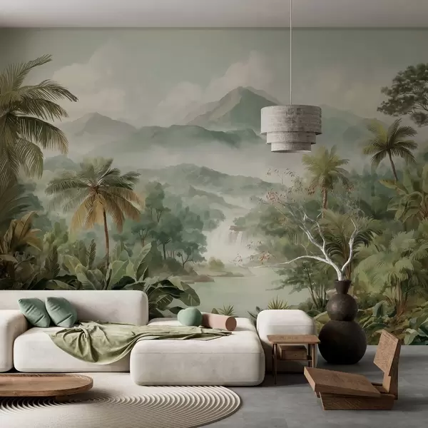 zidne murale tropska džungla s vodopadom w04306