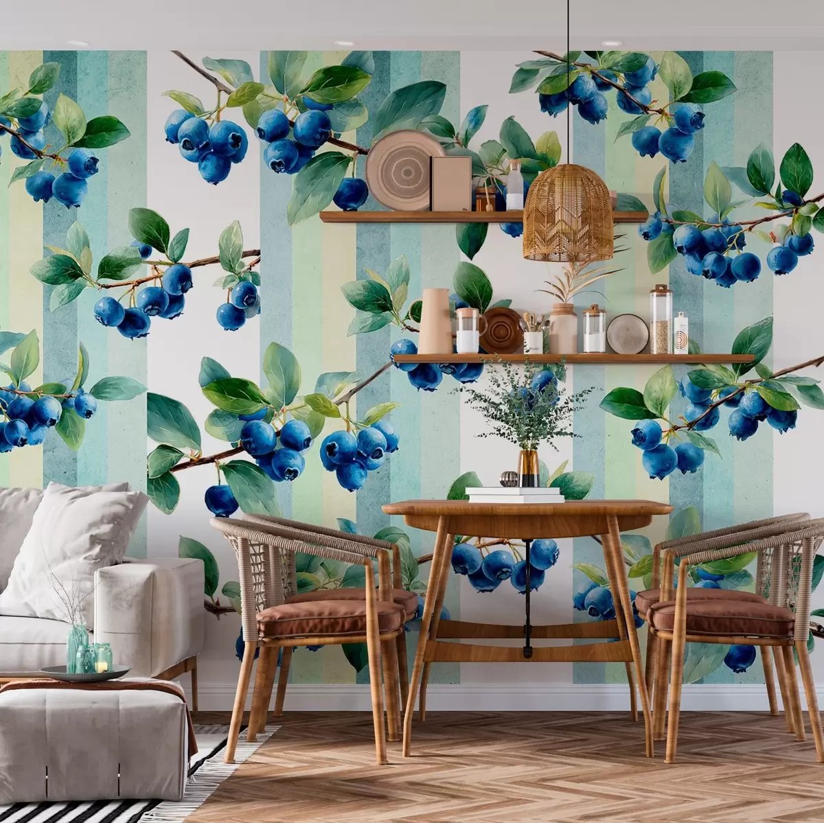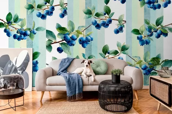 Zidne murale grozdovi borovnica na prugastoj pozadini br. w04307