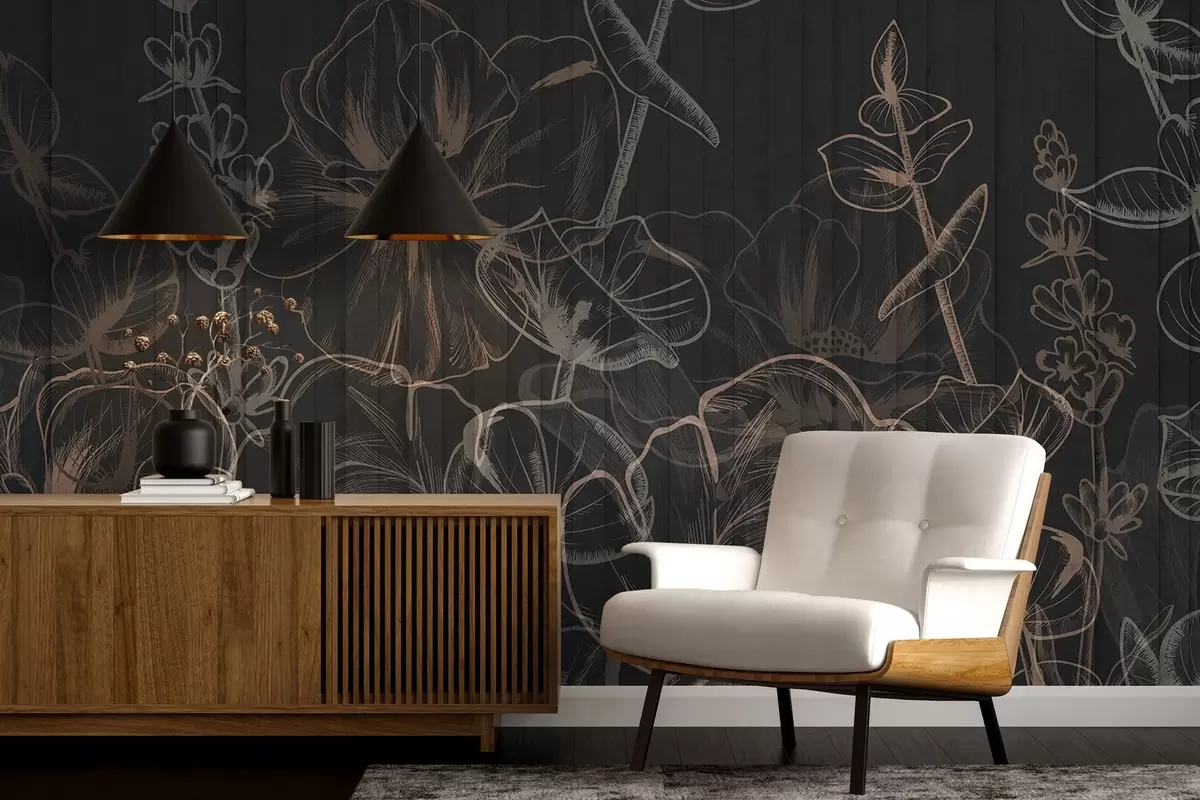 Zidne murale Siluete biljaka na betonskoj pozadini br. w04327v2